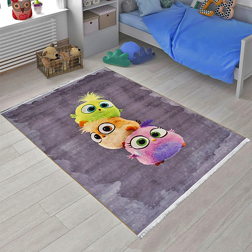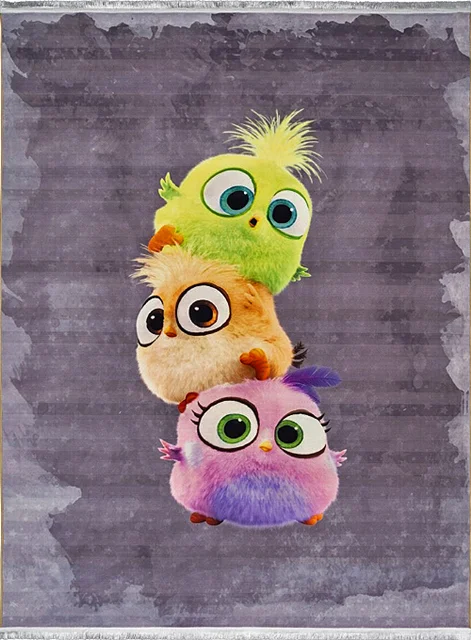 فرش محتشم اتاق کودک طرح جوجه رنگی کد 2599039062 زمینه طوسی (غیربرجسته)
