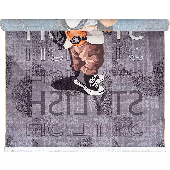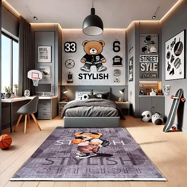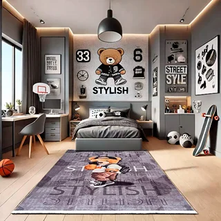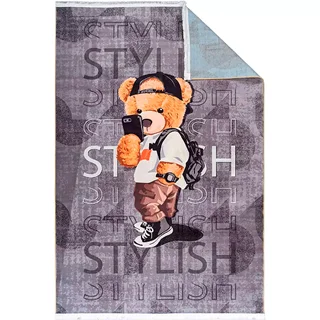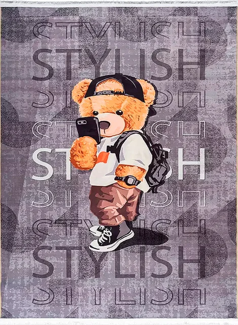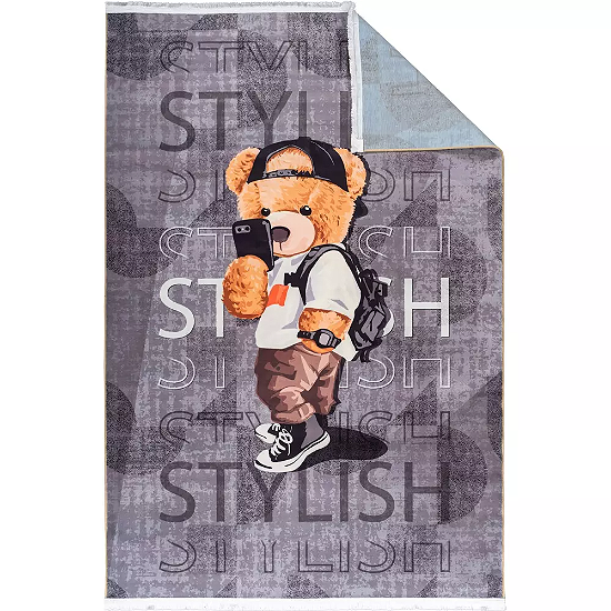 فرش محتشم اتاق کودک طرح خرس استایلیست کد 25KM0090 زمینه طوسی (غیربرجسته)