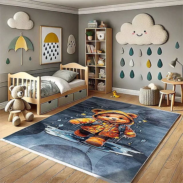 با فرش محتشم اتاق کودک طرح خرس بارانی، دنیای کودکتان را روشن کنید! این فرش با زمینه خاکستری و طراحی جذاب خرس بارانی، فضای اتاق را شاد و دلنشین میکند. کیفیت بالا و دوام طولانیمدت، این فرش را به انتخابی ایدهآل برای والدین تبدیل کرده است. هدیهای خاص برای کودکان خاص شما!