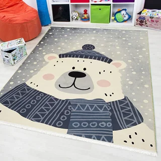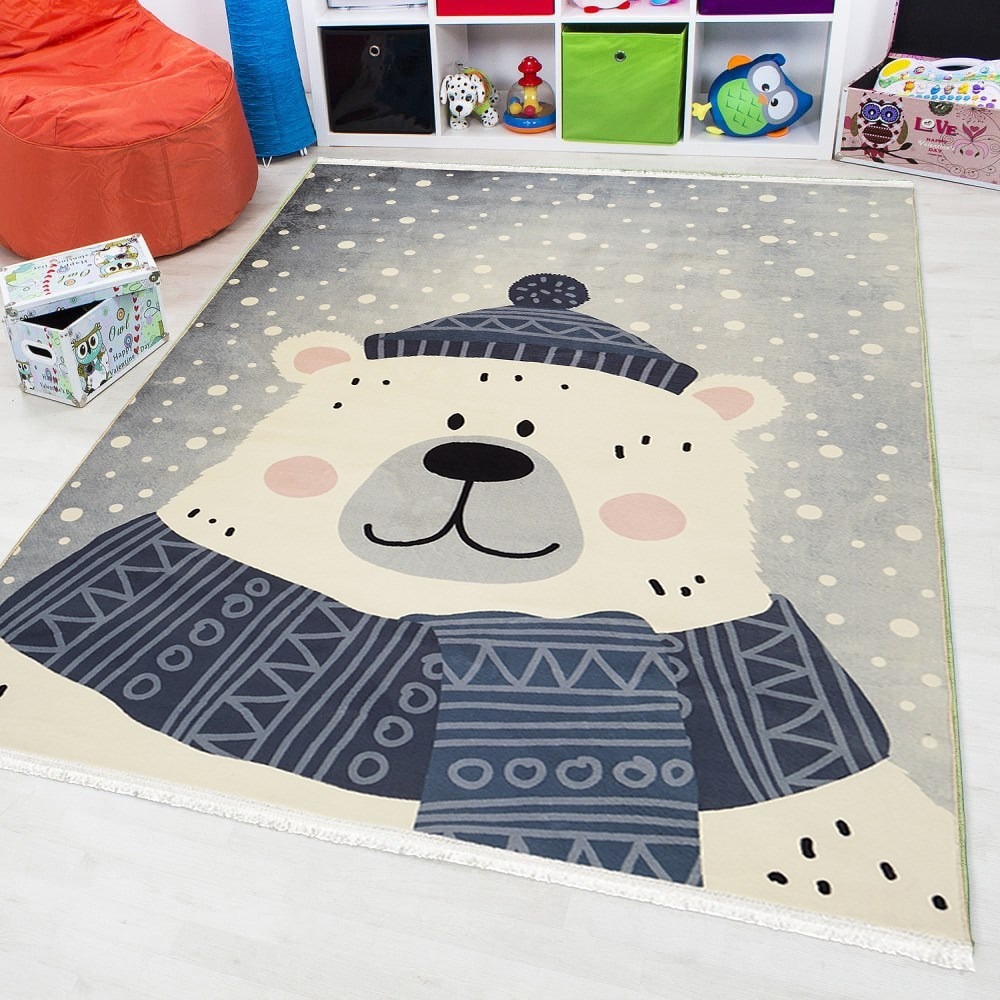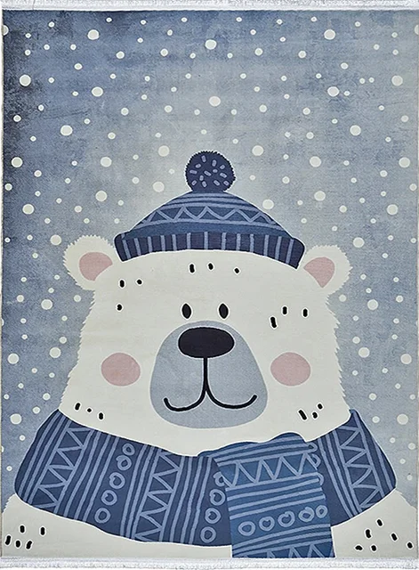 فرش محتشم اتاق کودک طرح خرس برفی کد 100273 زمینه تمام رنگ (غیربرجسته)