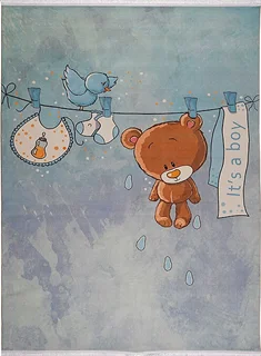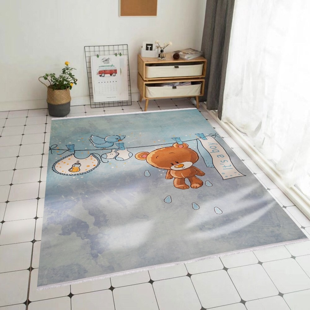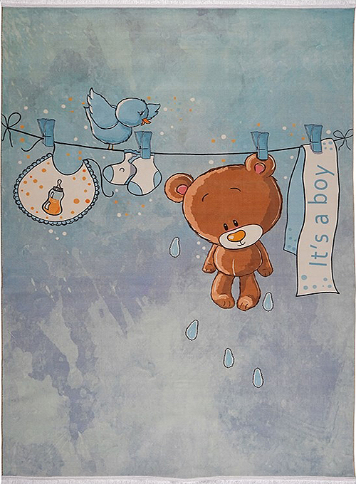 فرش محتشم اتاق کودک طرح خرس خیس کد 100262 زمینه آبی (غیربرجسته)