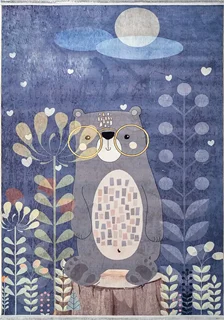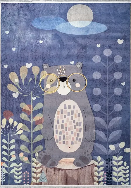 فرش محتشم اتاق کودک طرح خرس ملوس کد 2599021090 زمینه تمام رنگ (غیربرجسته)