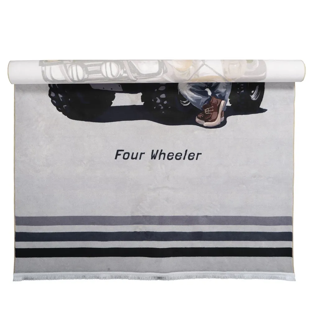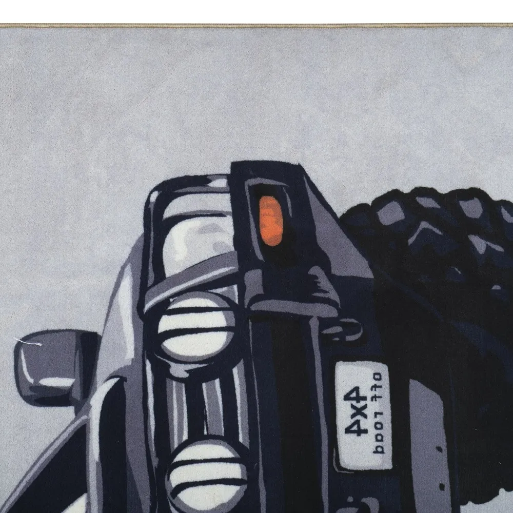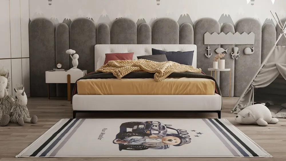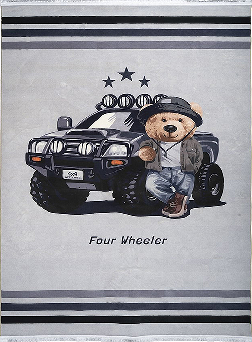 فرش محتشم اتاق کودک طرح خرس و ماشین کد 101278 زمینه طوسی (غیربرجسته)