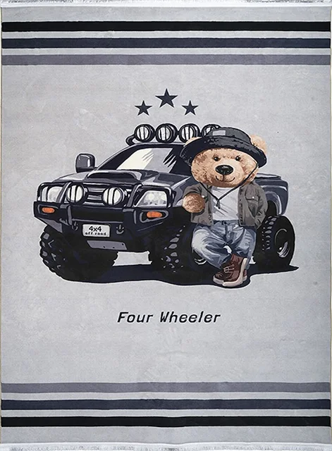 با فرش محتشم اتاق کودک طرح خرس و ماشین، فضایی شاد و دلنشین برای فرزندتان ایجاد کنید! زمینه طوسی با طراحی جذاب و کودکانهای از خرس و ماشین، بهراحتی با دکوراسیون اتاق همخوانی دارد. این فرش غیربرجسته، نرمی و راحتی را به ارمغان میآورد و محیطی ایمن و گرم فراهم میکند. فرصت را از دست ندهید!