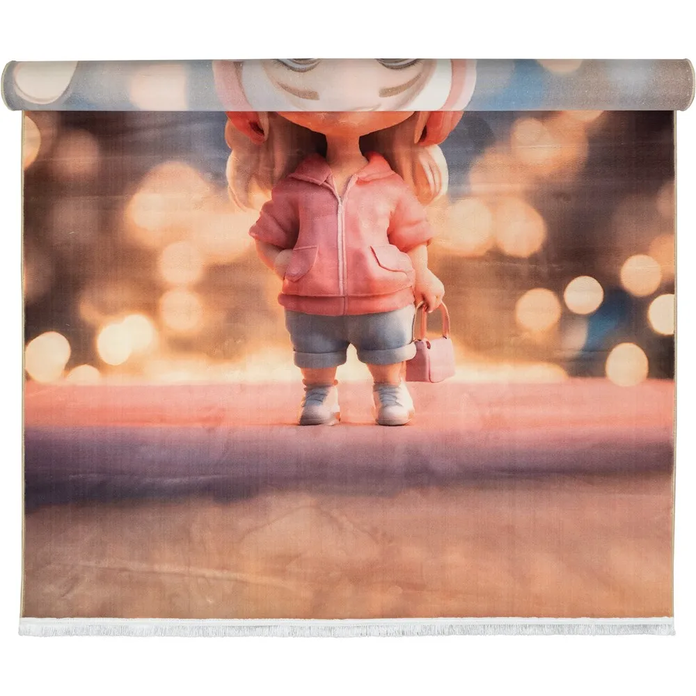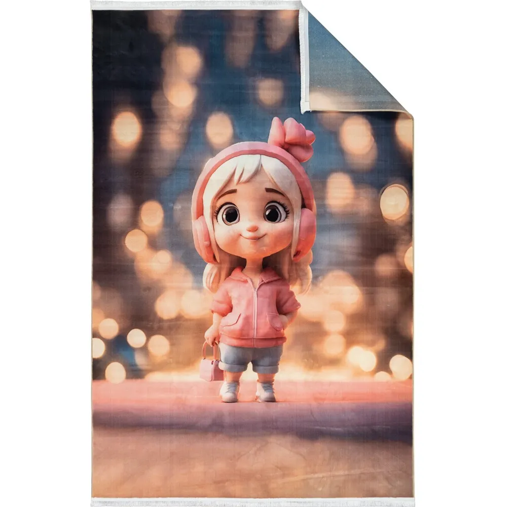 فرش محتشم اتاق کودک طرح دخترک مدرن کد 25KK0020 زمینه خاکستری (غیربرجسته)