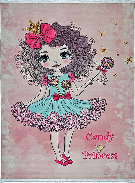 فرش محتشم اتاق کودک طرح دختر آبنباتی کد 101212 زمینه صورتی (غیربرجسته)