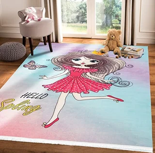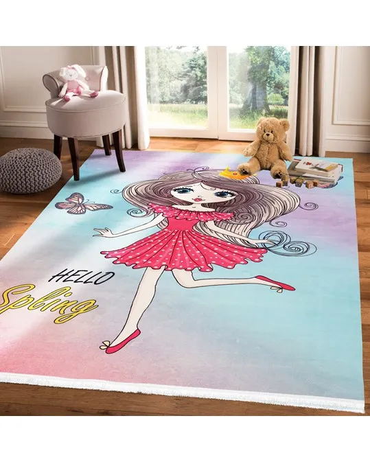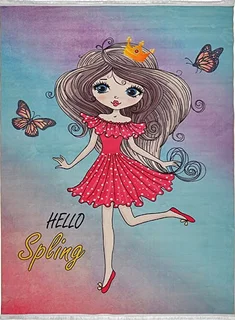 فرش محتشم اتاق کودک طرح دختر بهار کد 101209 زمینه تمام رنگ (غیربرجسته)