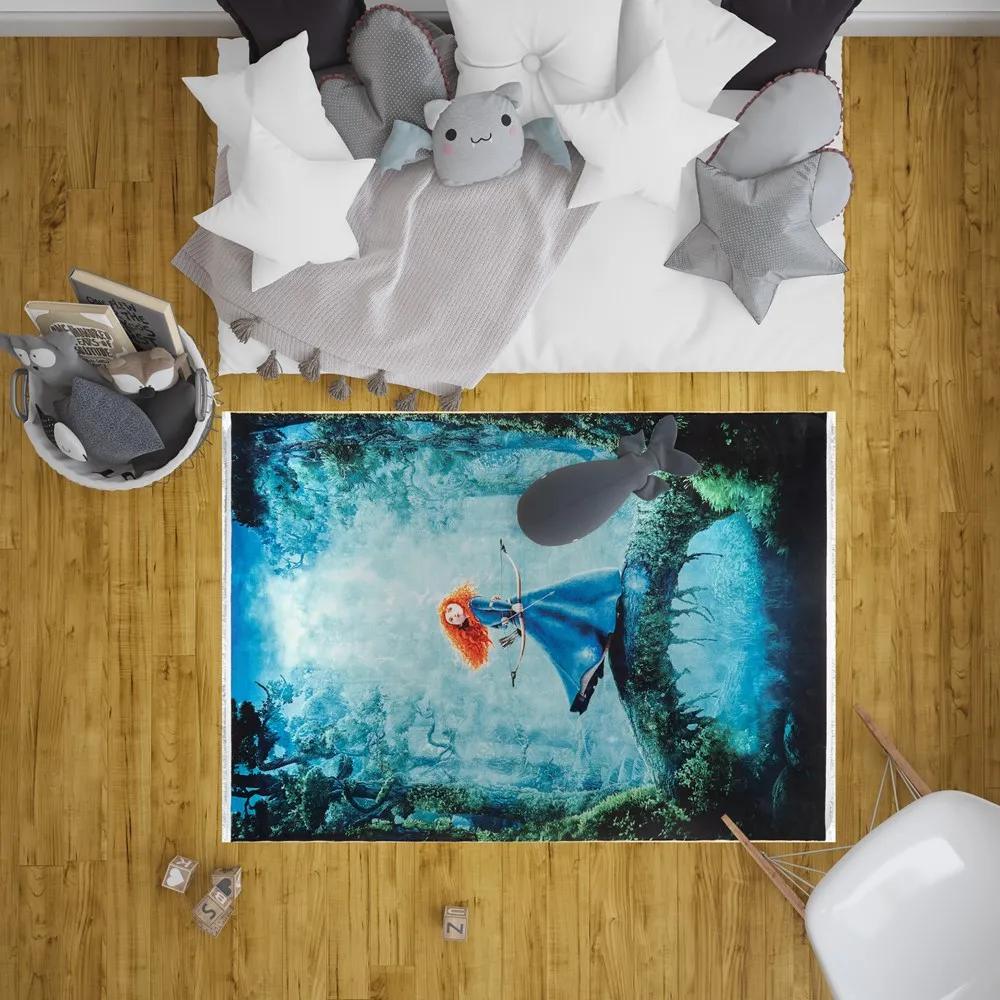 فرش محتشم اتاق کودک طرح دختر شجاع کد 101286 زمینه تمام رنگ (غیربرجسته)