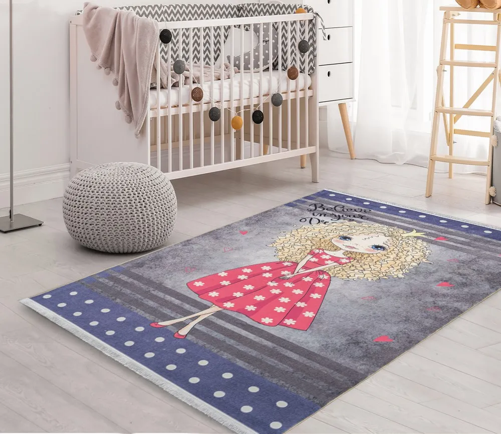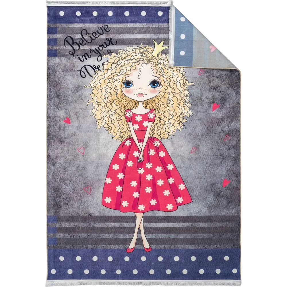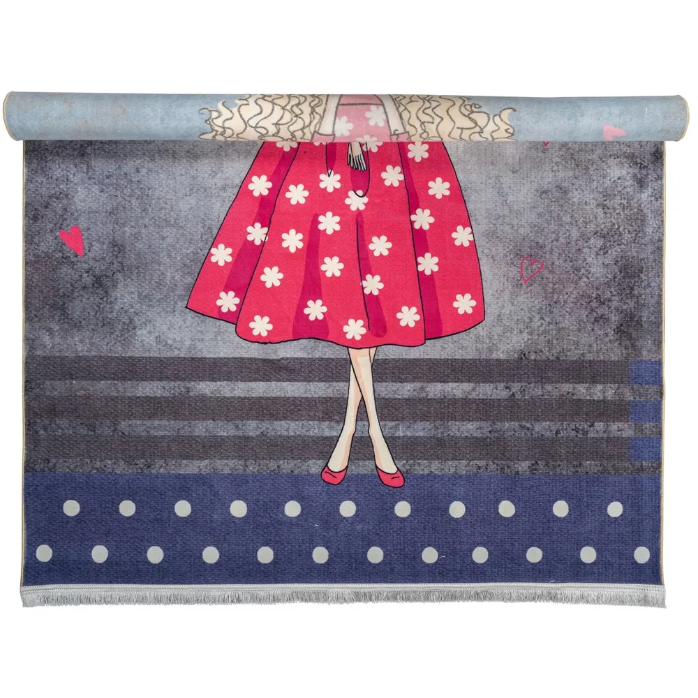 فرش محتشم اتاق کودک طرح دختر صورتی کد 2599012090 زمینه تمام رنگ (غیربرجسته)