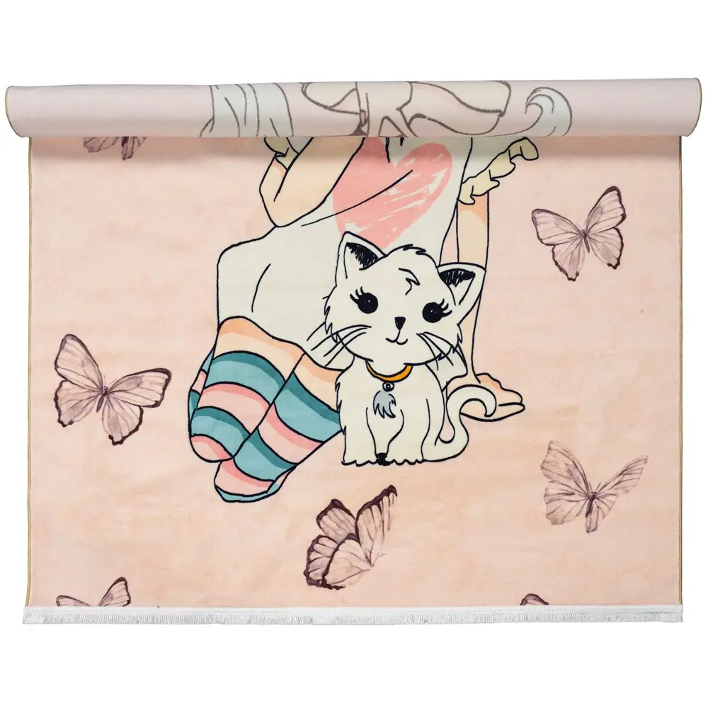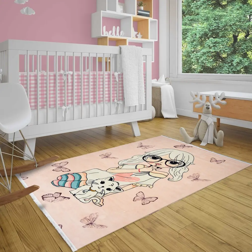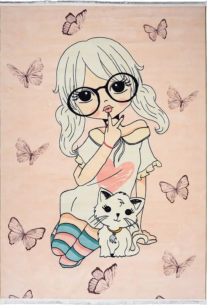 فرش محتشم اتاق کودک طرح دختر عینکی کد 101216 زمینه صورتی (غیربرجسته)