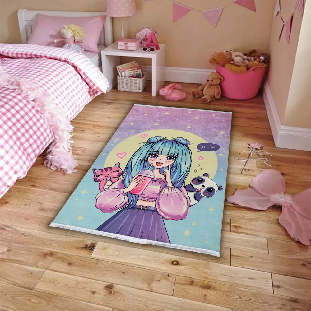 فرش محتشم اتاق کودک طرح دختر فشن کد 101243 زمینه تمام رنگ (غیربرجسته)