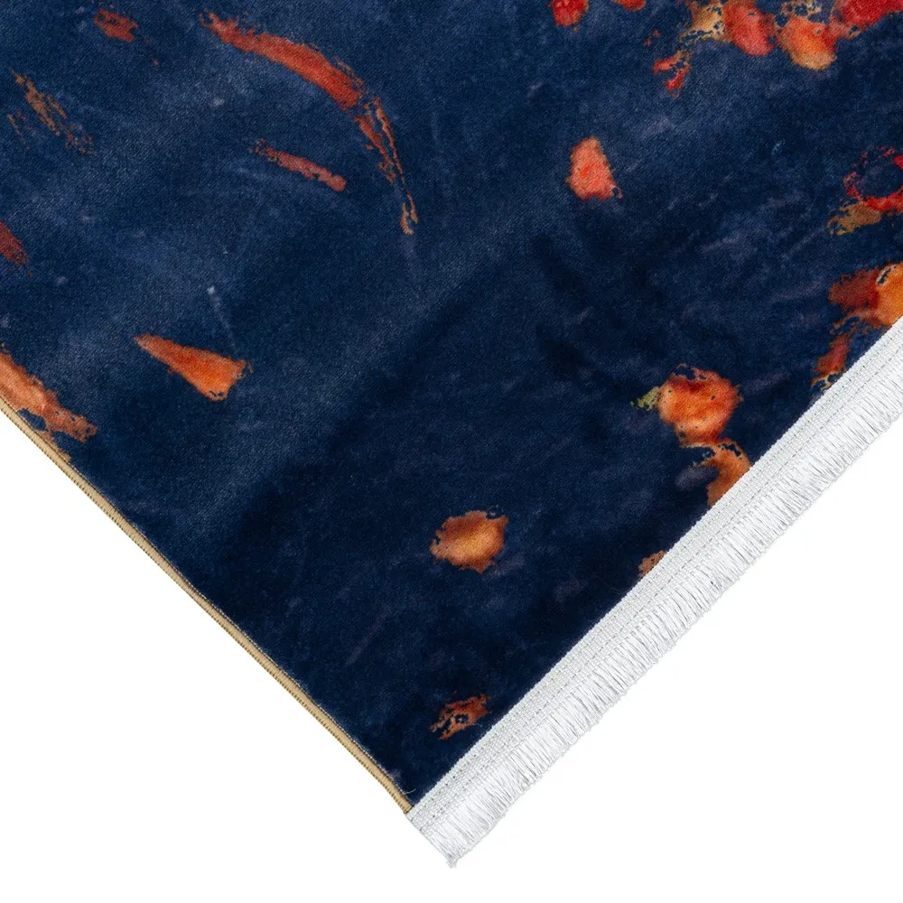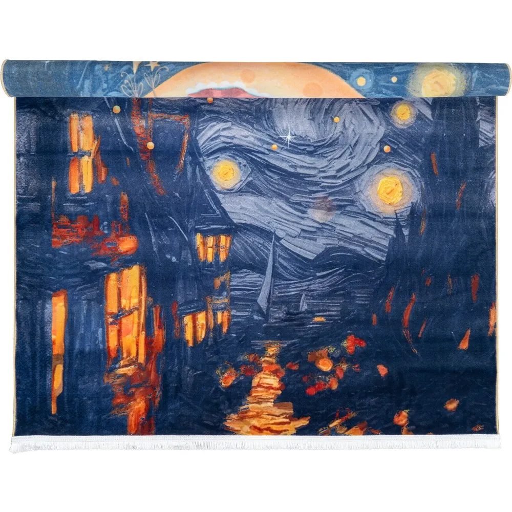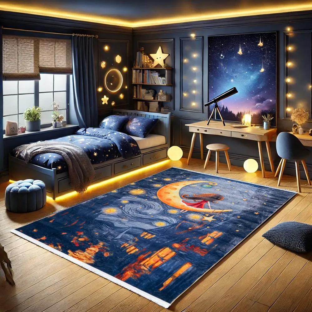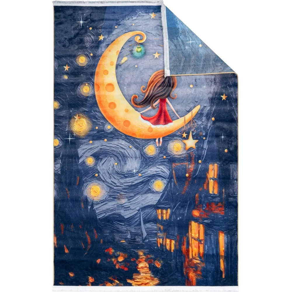 فرش محتشم اتاق کودک طرح دختر ماه کد 25KM0050 زمینه سورمه ای (غیربرجسته)
