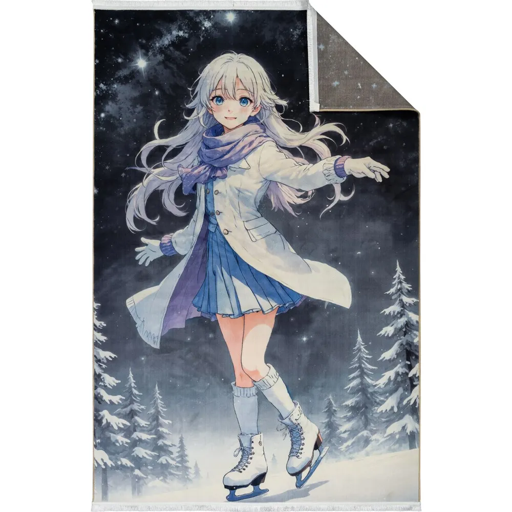 فرش محتشم اتاق کودک طرح دختر مدرن کد 25KK0000 زمینه خاکستری (غیربرجسته)