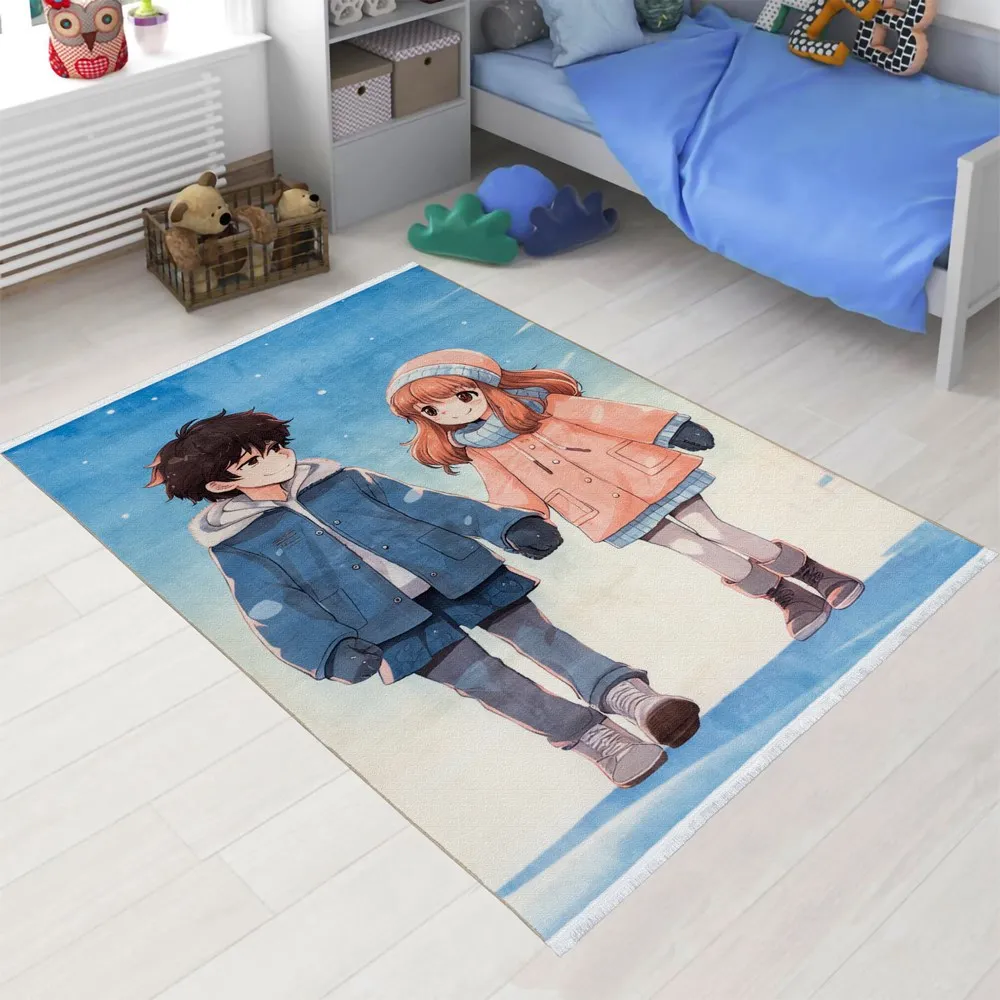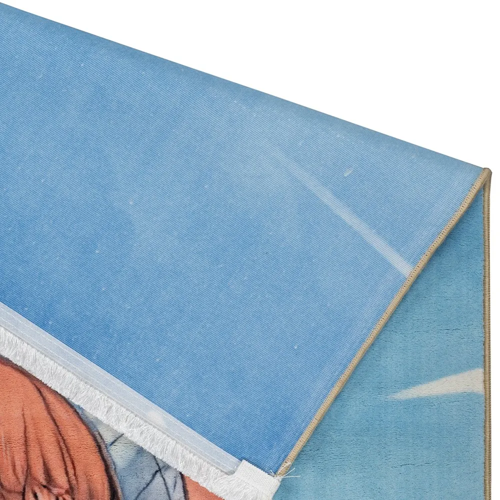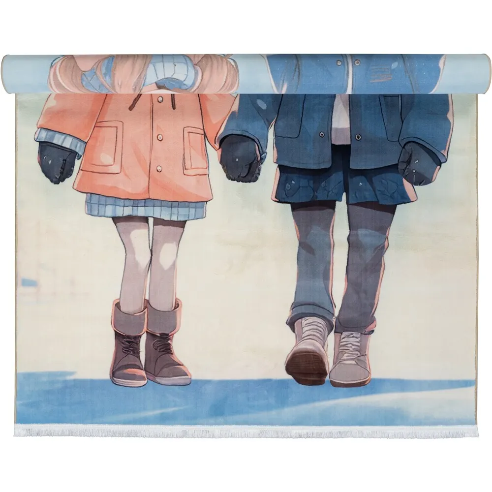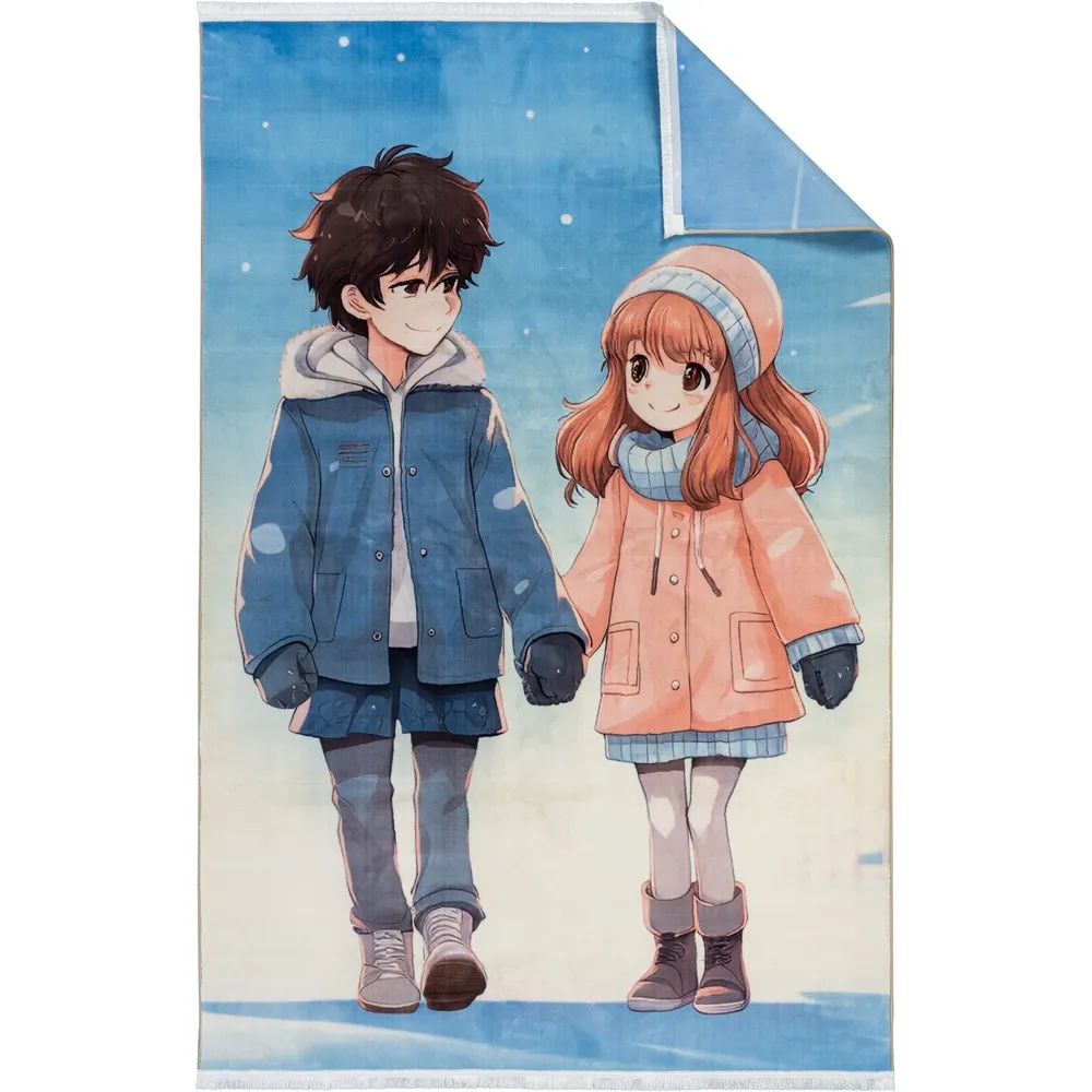 فرش محتشم اتاق کودک طرح دختر و پسر کد 25KK0070 زمینه آبی (غیربرجسته)