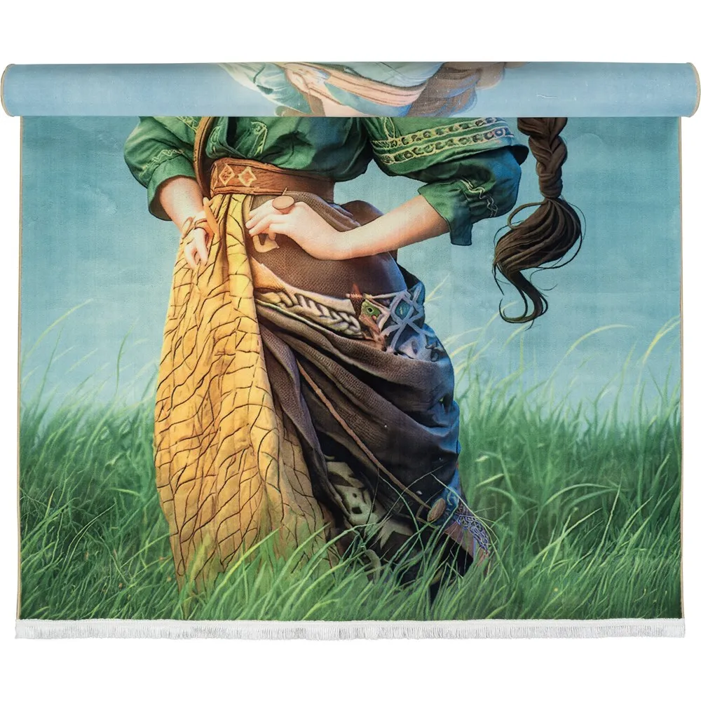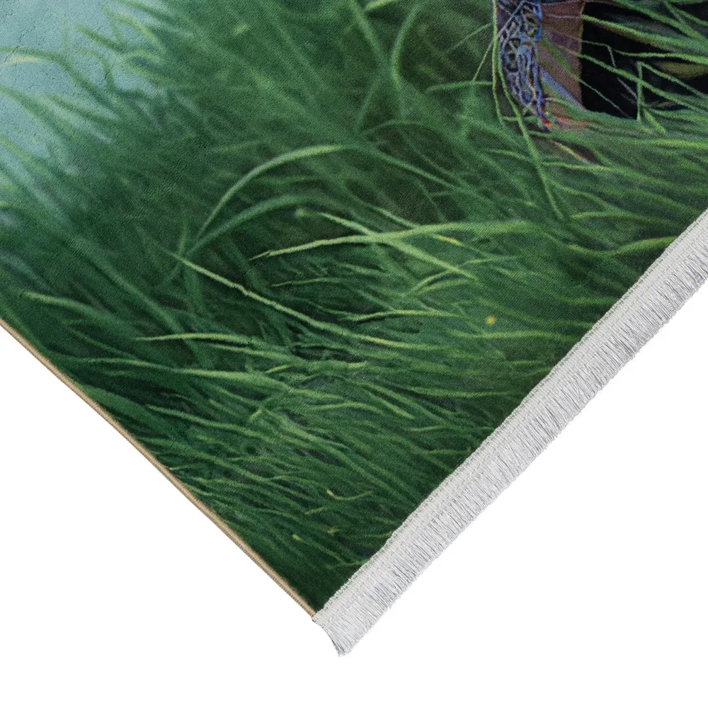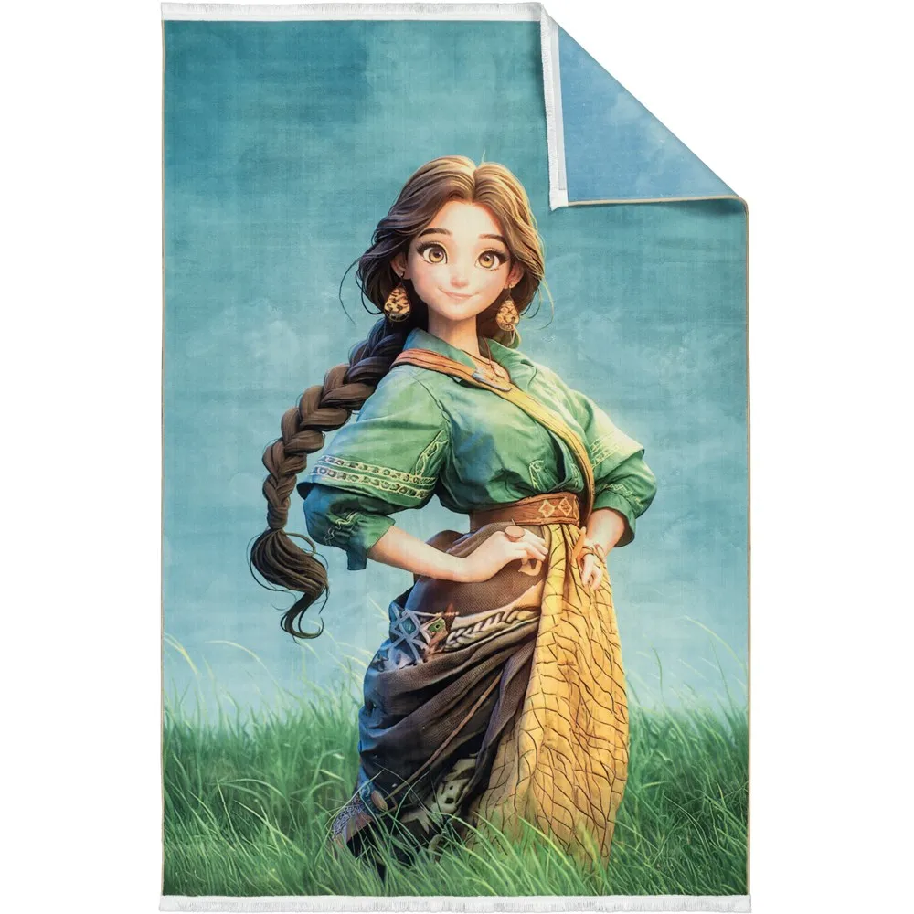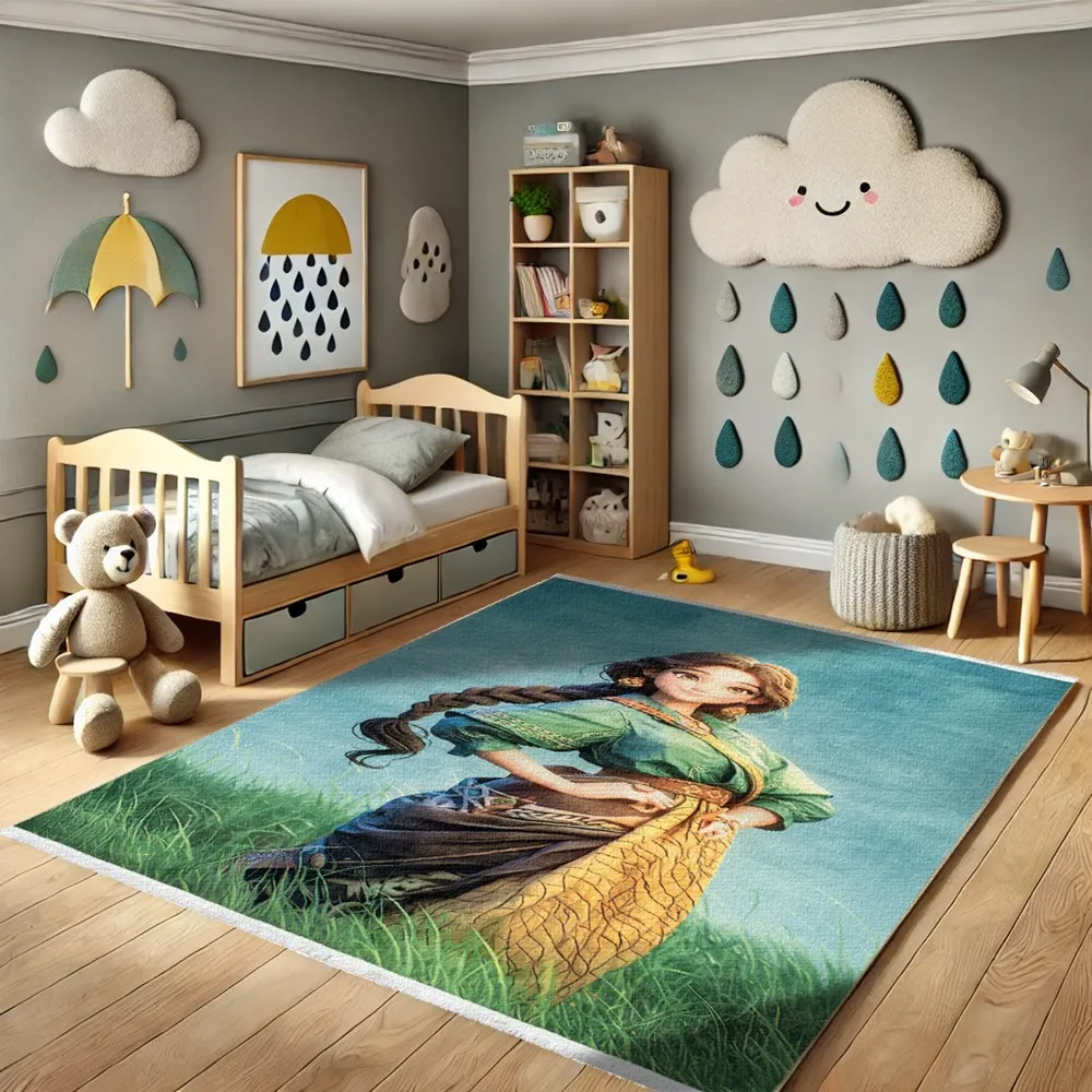فرش محتشم اتاق کودک طرح دختر کد 25KK0030 زمینه سبز (غیربرجسته)