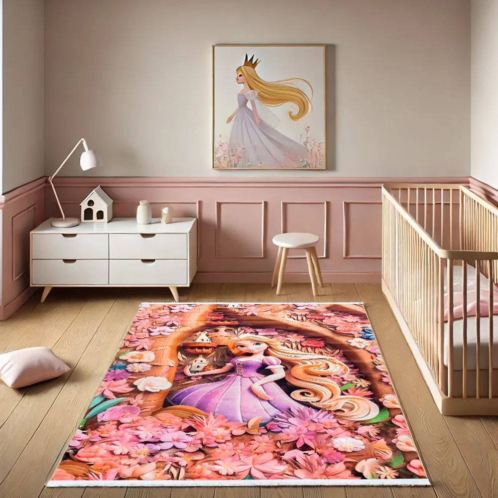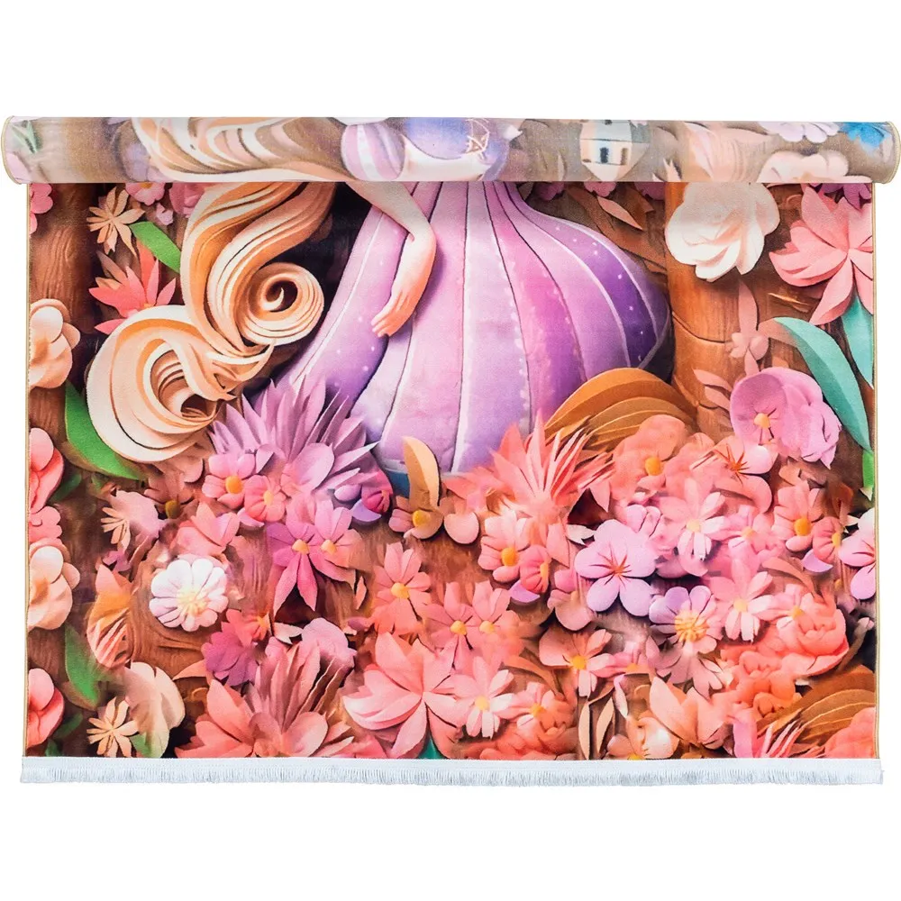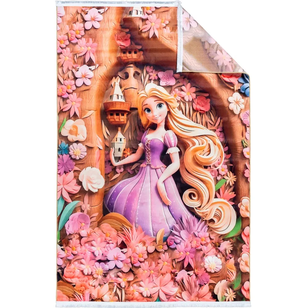 فرش محتشم اتاق کودک طرح راپونزل کد 25KD0010 زمینه نسکافه ای (غیربرجسته)