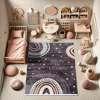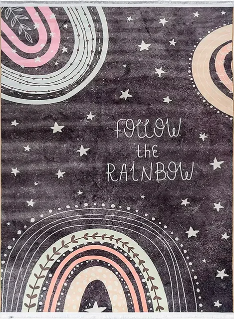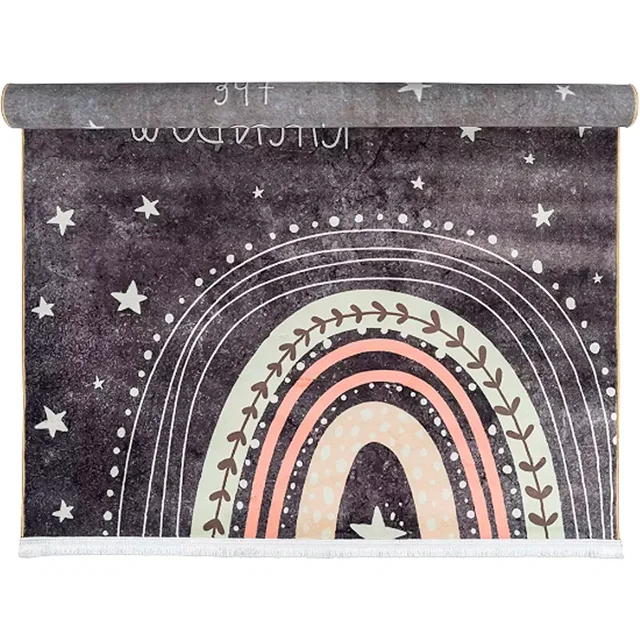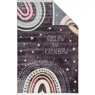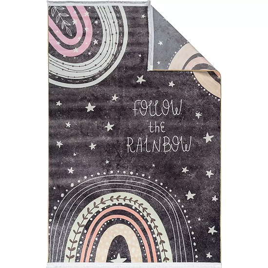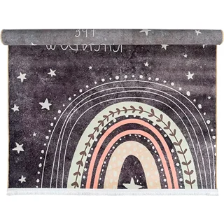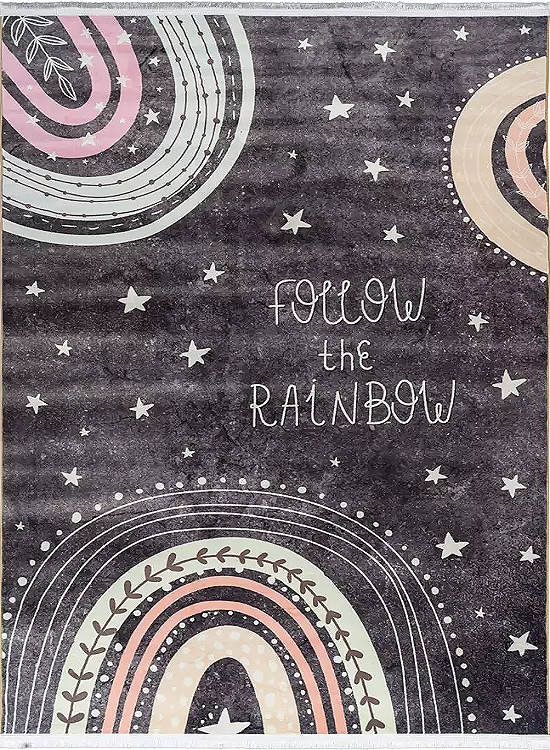 فرش محتشم اتاق کودک طرح رنگین کمان کد 25KM0120 زمینه دودی (غیربرجسته)