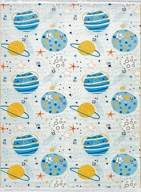 فرش محتشم اتاق کودک طرح سیاره ها کد 25km0130 زمینه آبی (غیربرجسته)
