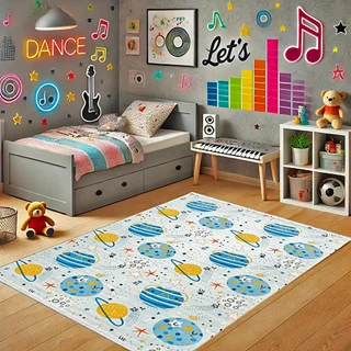 فرش محتشم اتاق کودک طرح سیارهها کد 25km0130 با زمینه آبی، انتخابی ایدهآل برای ایجاد فضایی خلاقانه و شاد در اتاق کودک شماست. این فرش با طراحی جذاب و کیفیت بالا، به ماجراجوییهای خیالی کودک شما جان میبخشد و اتاقش را به دنیایی از رنگها و سیارهها تبدیل میکند. تجربهای که او هرگز فراموش نخواهد کرد!