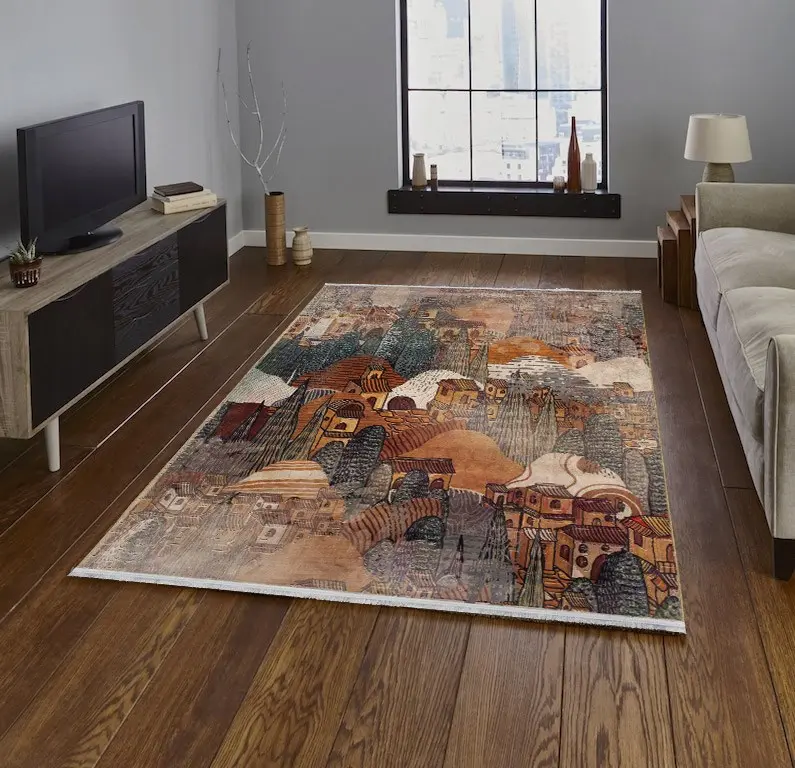 فرش محتشم اتاق کودک طرح شهر خیال کد 2599032090 زمینه تمام رنگ (غیربرجسته)