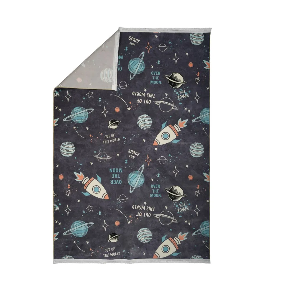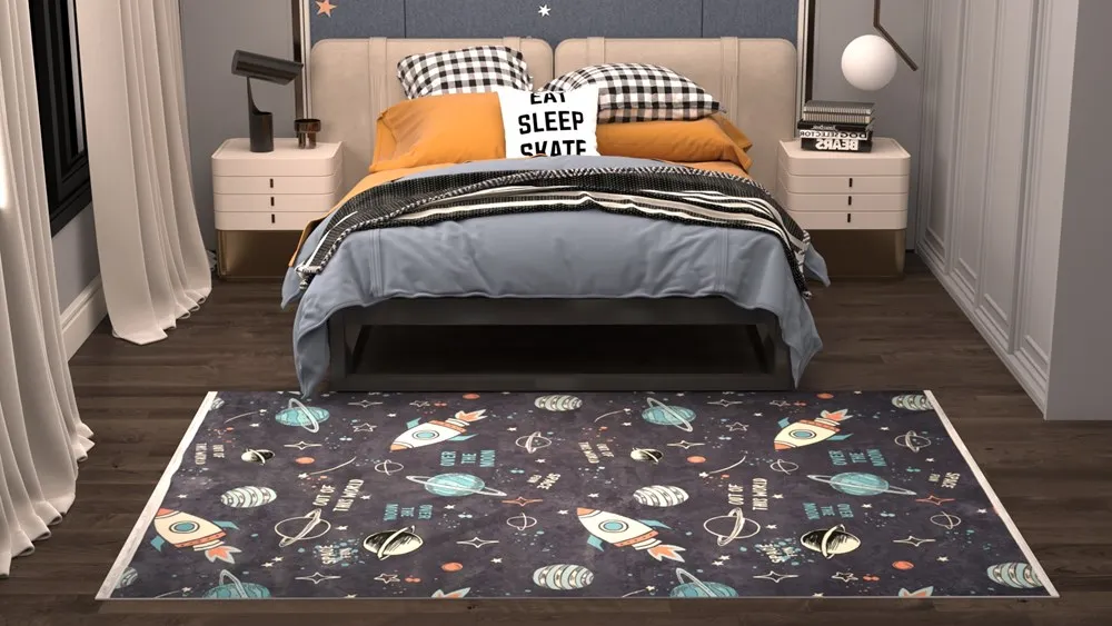 فرش محتشم اتاق کودک طرح فضانوردی کد 101255 زمینه تمام رنگ (غیربرجسته)