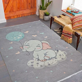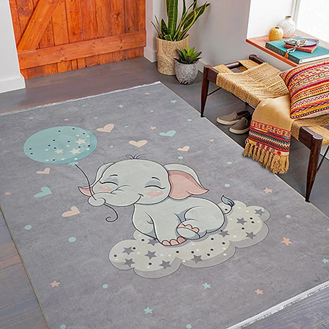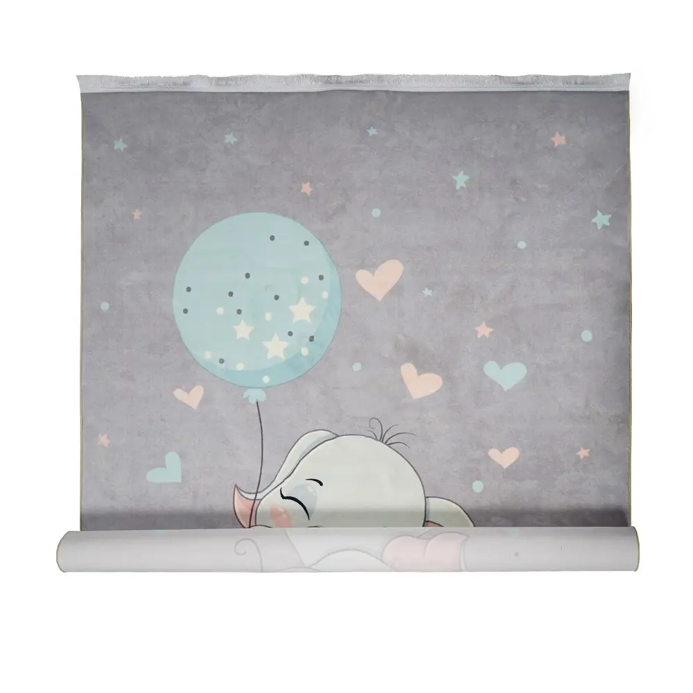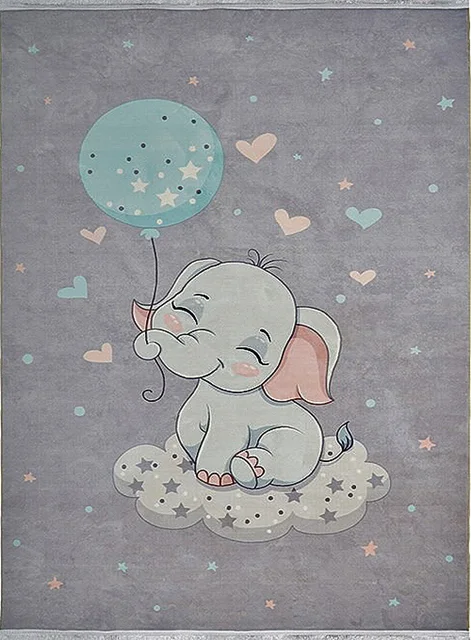 فرش محتشم اتاق کودک طرح فیل مهربان کد 101260 زمینه طوسی (غیربرجسته)
