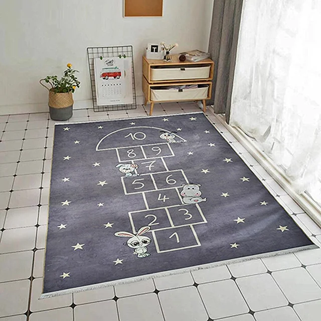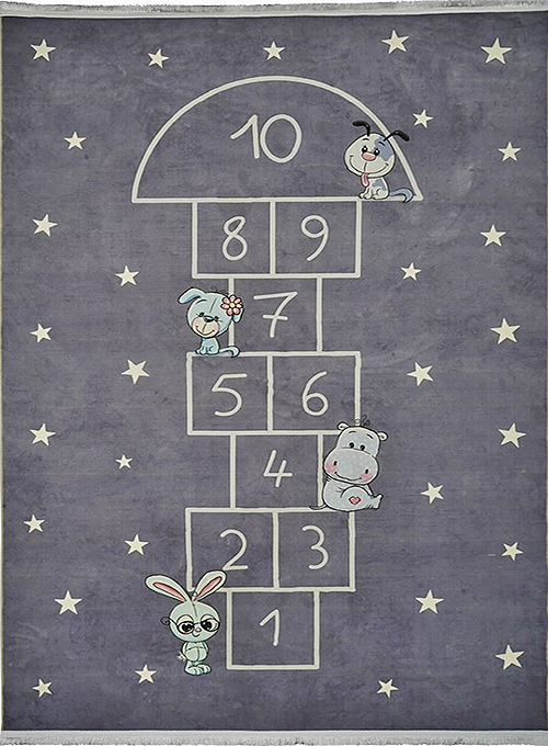 فرش محتشم اتاق کودک طرح لی لی کد 101254 زمینه خاکستری (غیربرجسته)