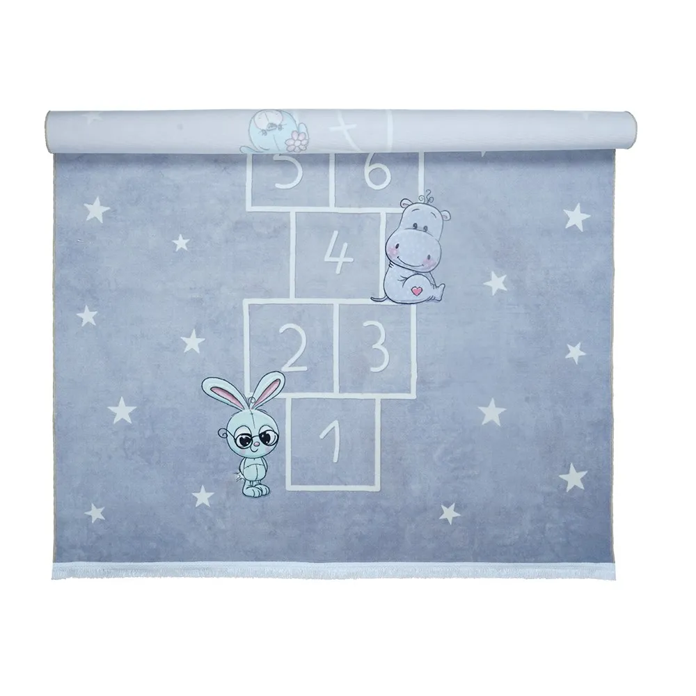 فرش محتشم اتاق کودک طرح لی لی کد 101254 زمینه طوسی (غیربرجسته)