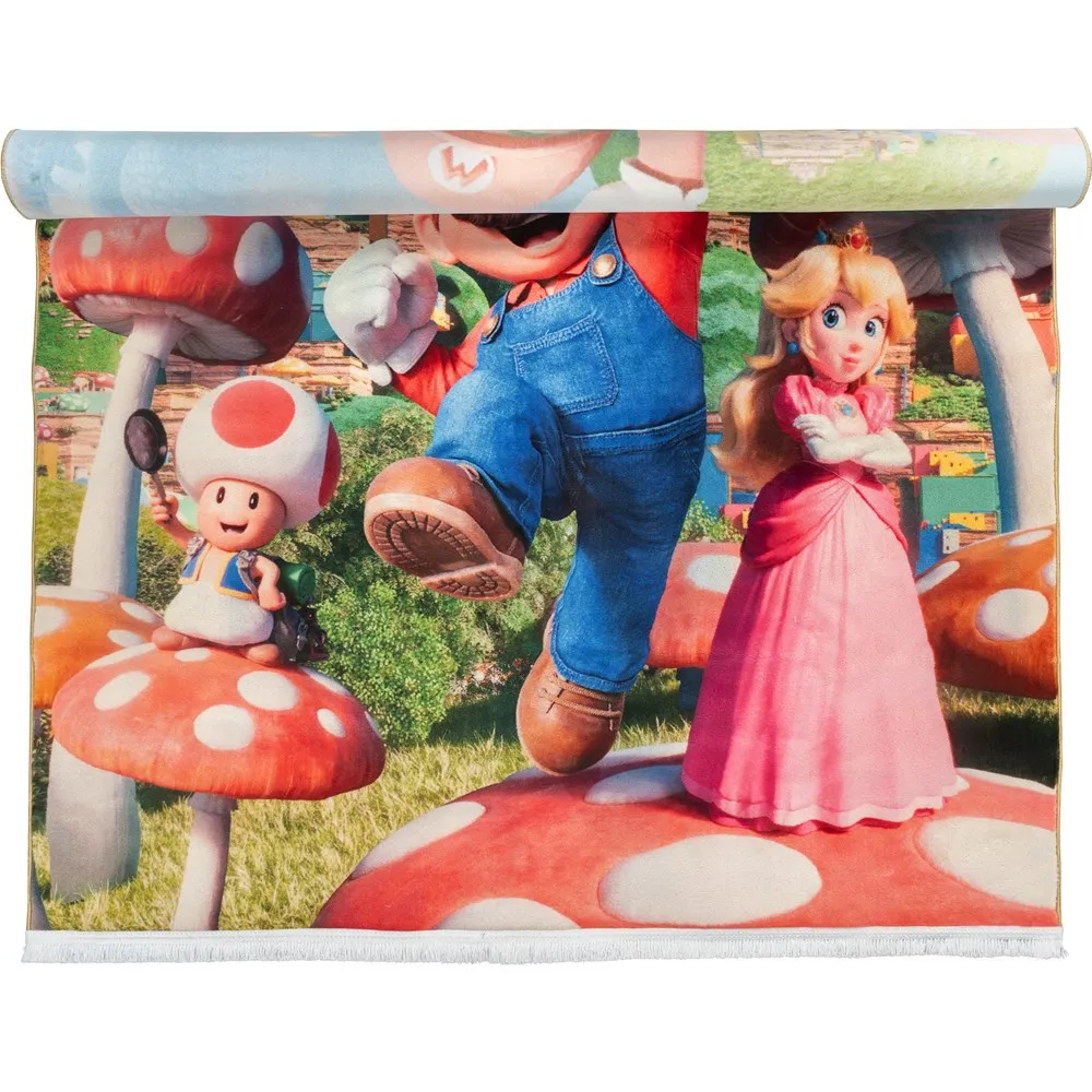 فرش محتشم اتاق کودک طرح ماریو کد 25KM0190 زمینه سبز (غیربرجسته)