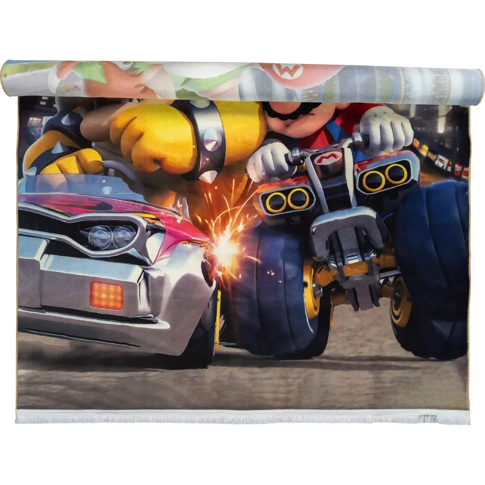 فرش محتشم اتاق کودک طرح ماریو کد 25KP0010 زمینه دودی (غیربرجسته)