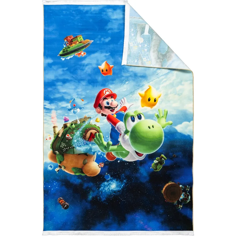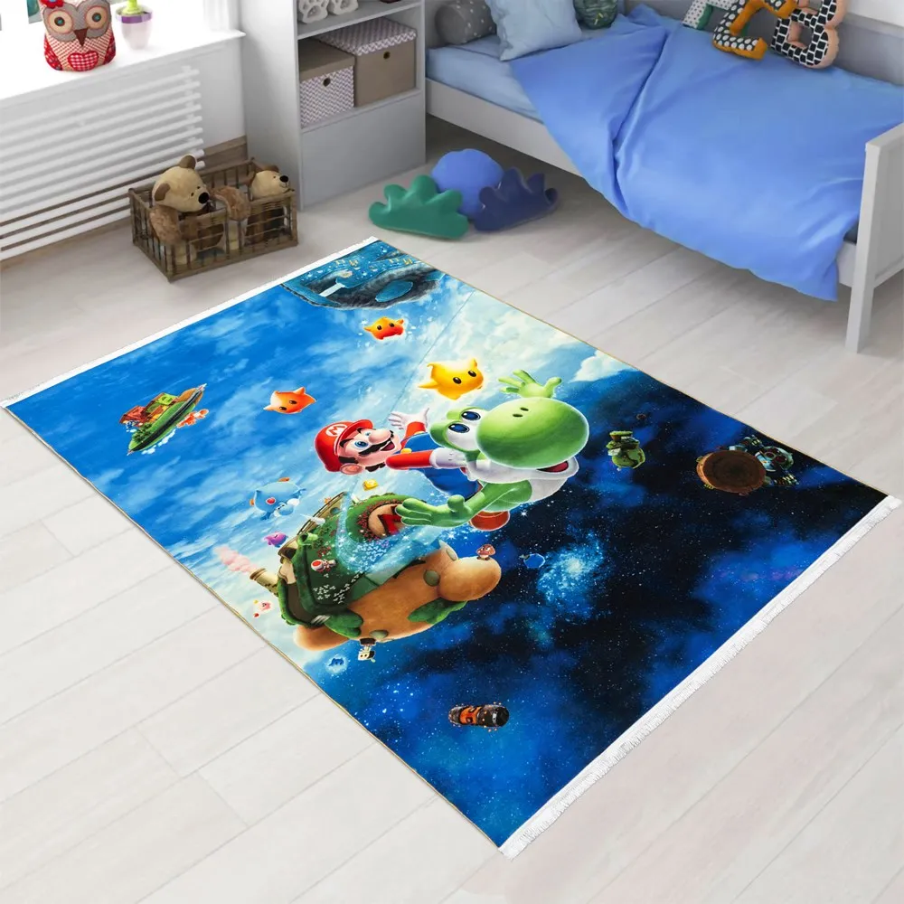 فرش محتشم اتاق کودک طرح ماریو کد 25KP0020 زمینه آبی (غیربرجسته)