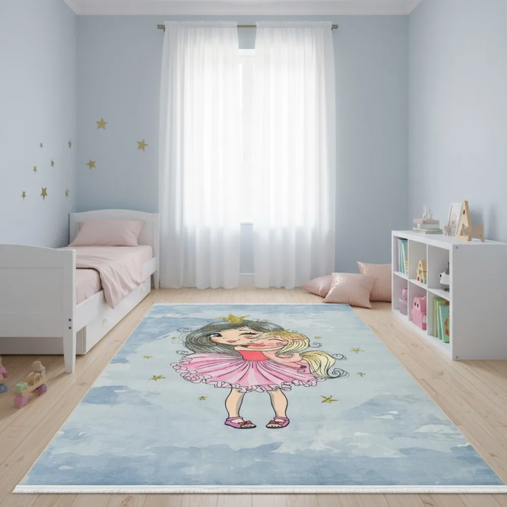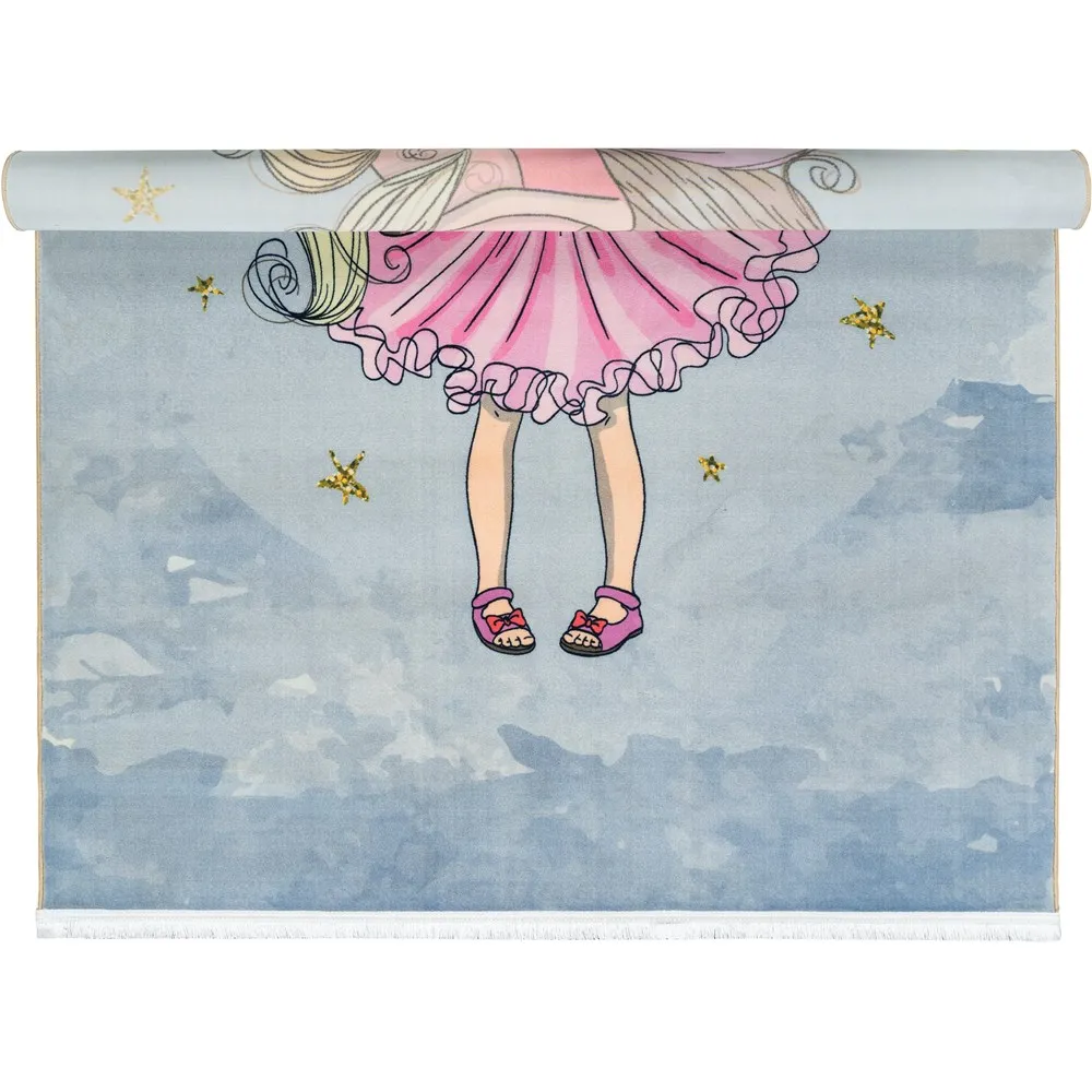 فرش محتشم اتاق کودک طرح پرنسس و یونیکورن کد 101210 زمینه طوسی (غیربرجسته)