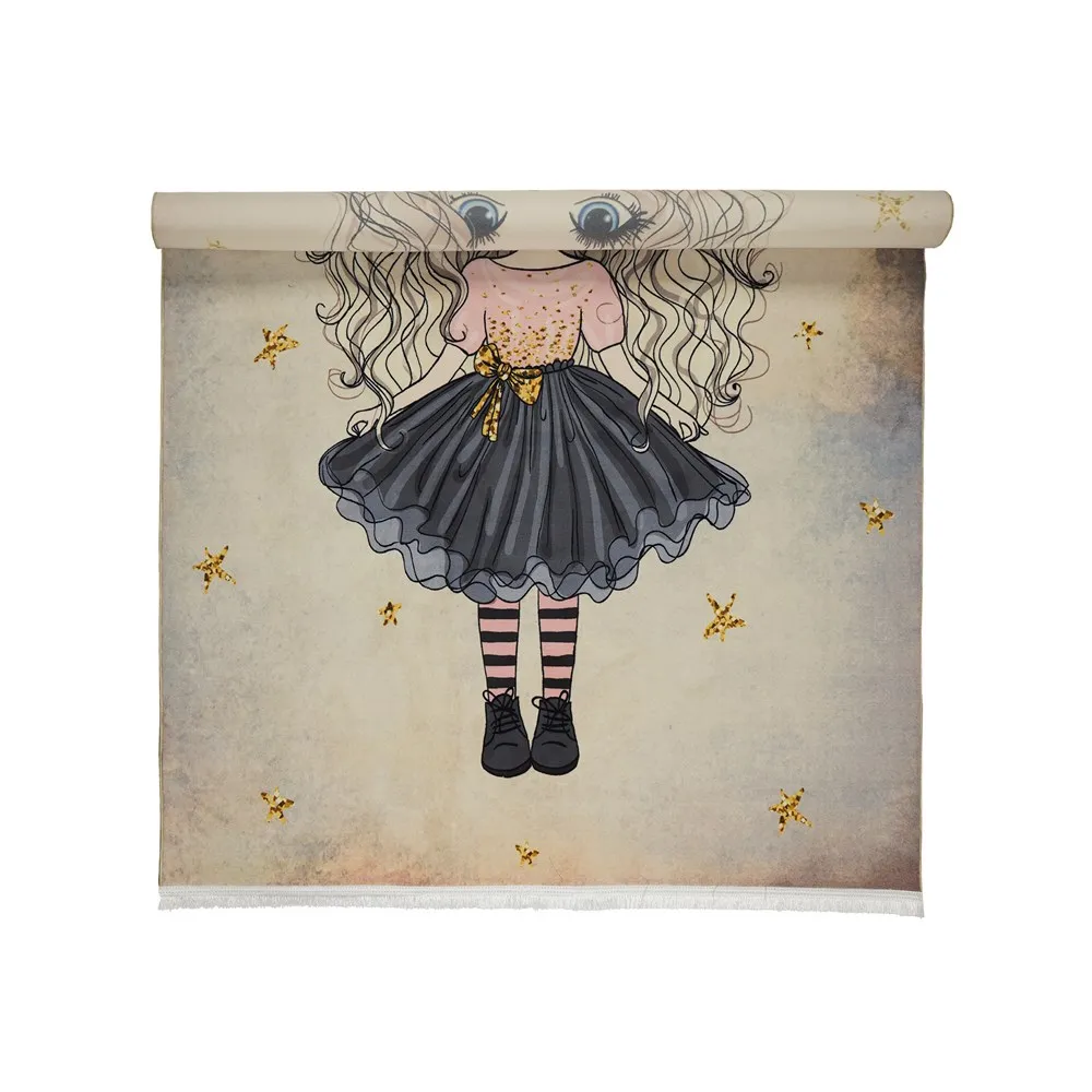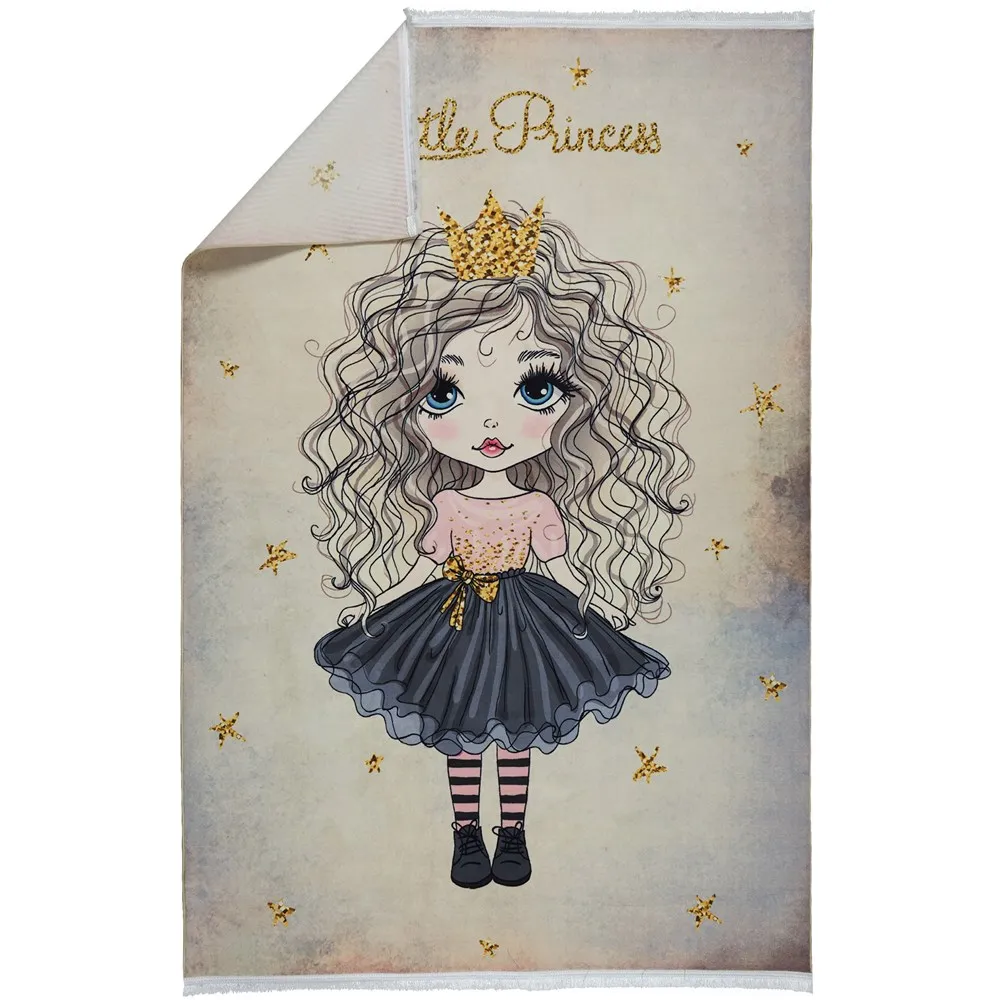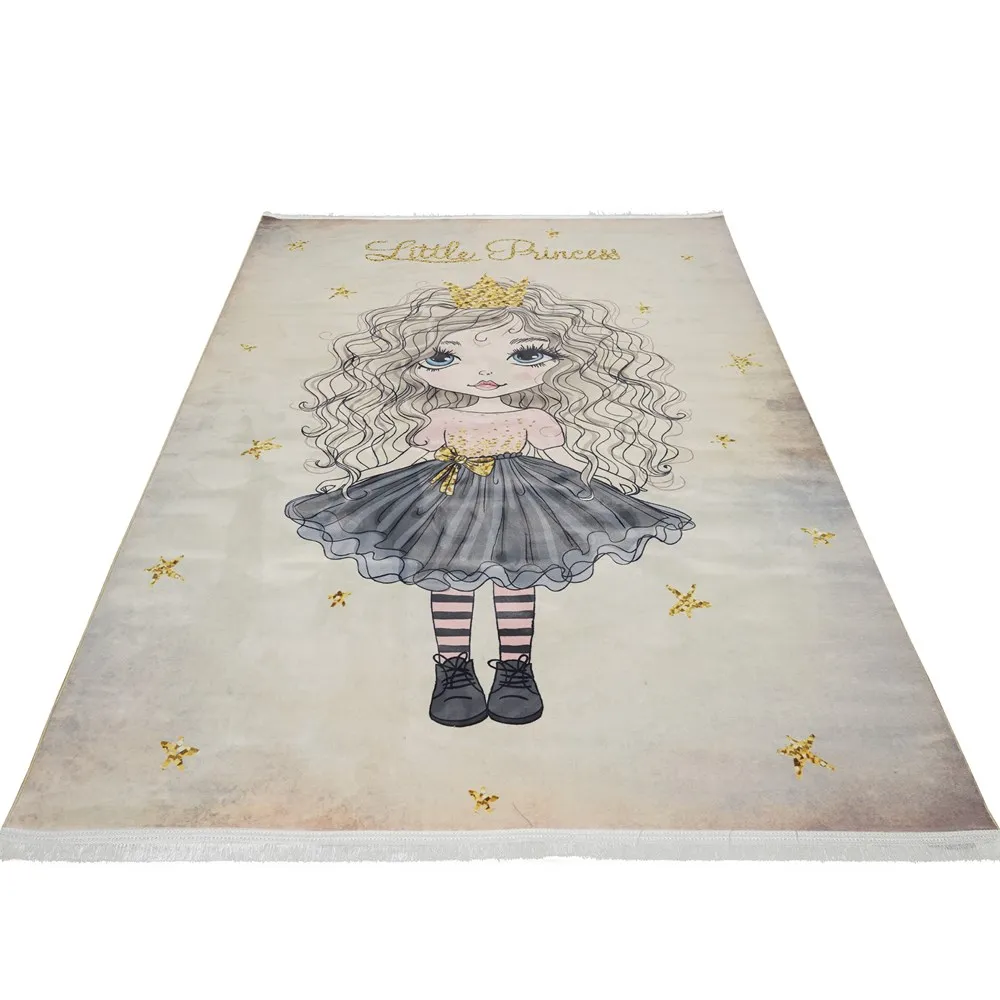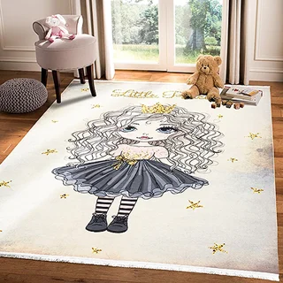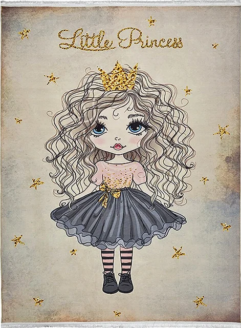 فرش محتشم اتاق کودک طرح پرنسس کوچولو کد 101229 زمینه تمام رنگ (غیربرجسته)