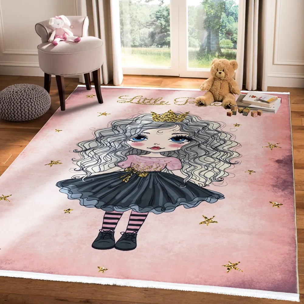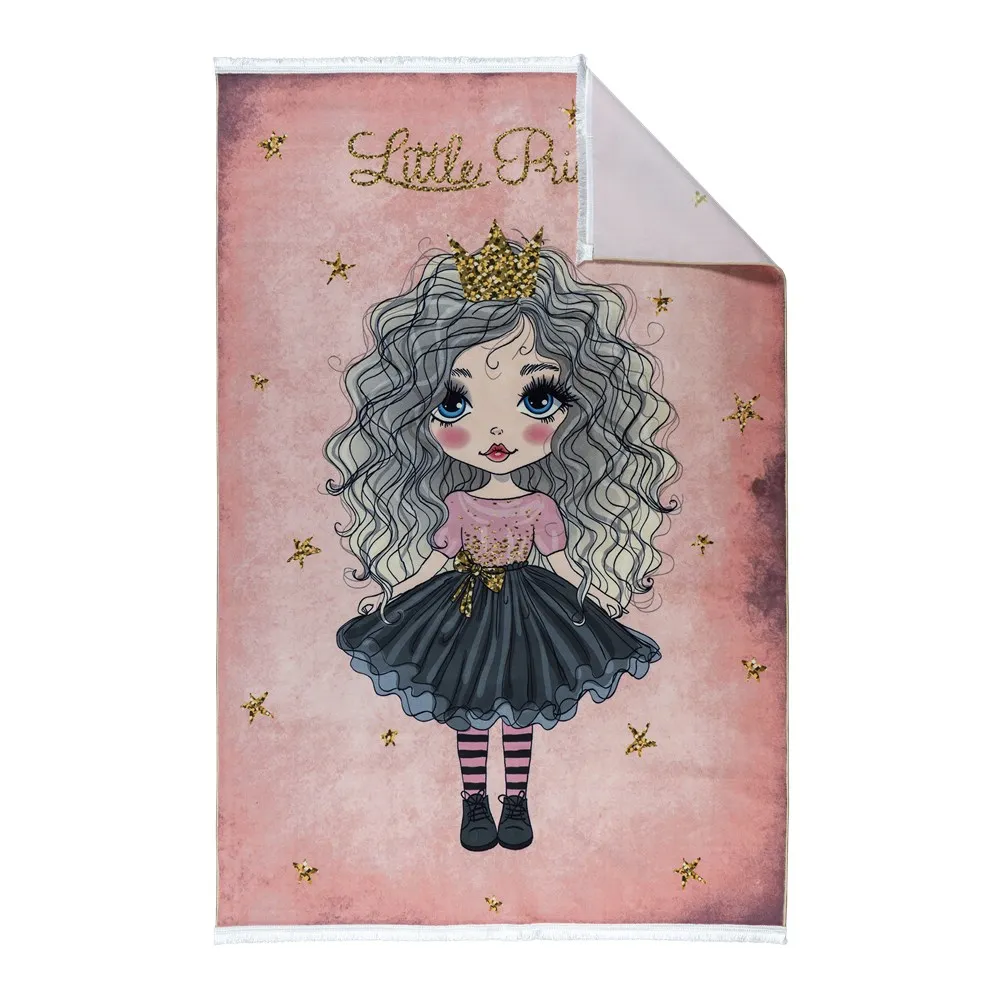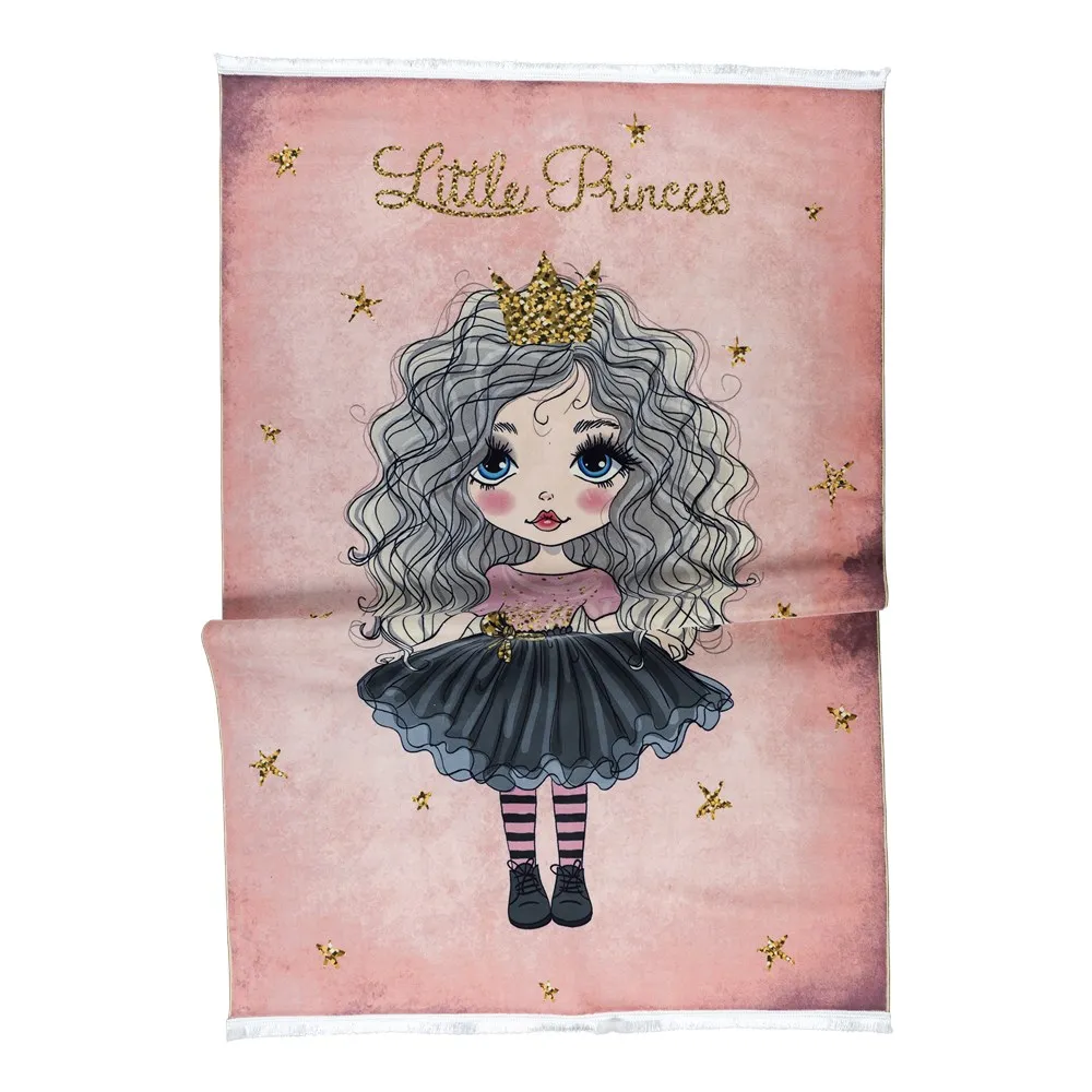 فرش محتشم اتاق کودک طرح پرنسس کوچولو کد 101229 زمینه صورتی (غیربرجسته)