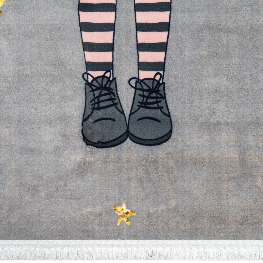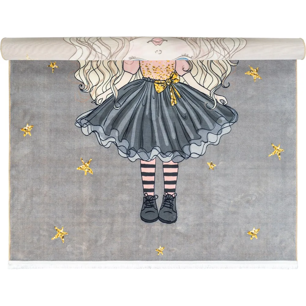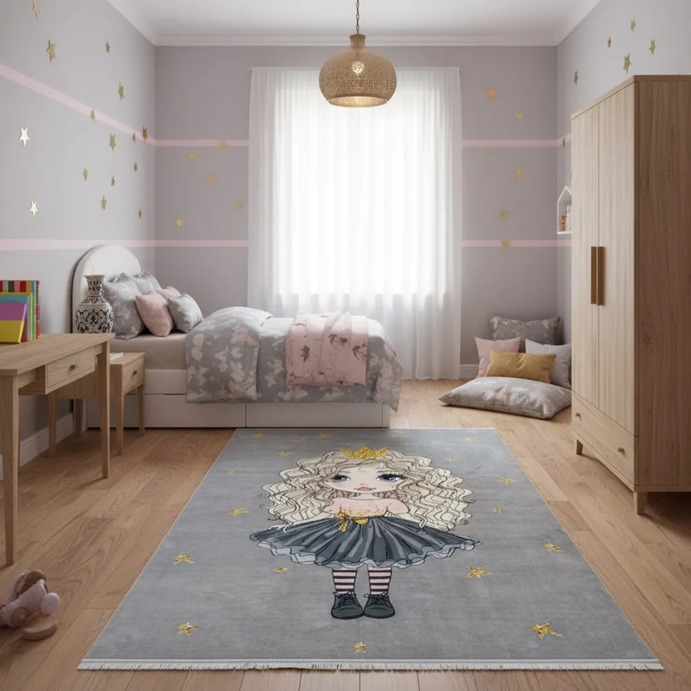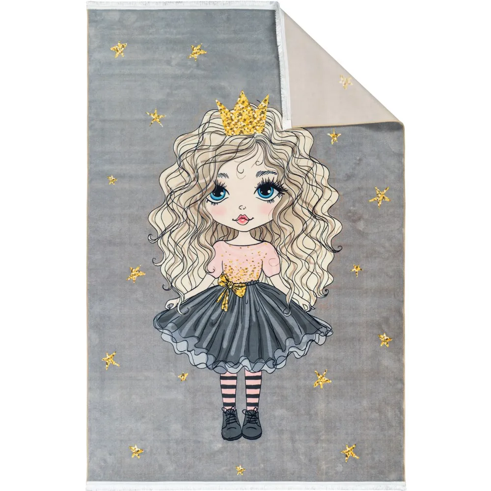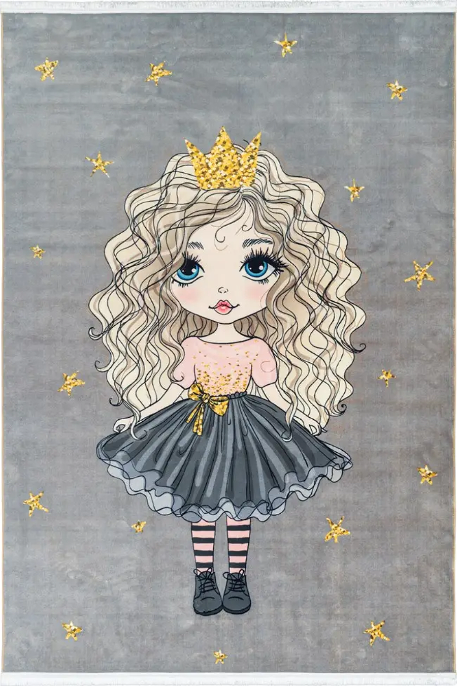 فرش محتشم اتاق کودک طرح پرنسس کوچولو کد 101229 زمینه طوسی (غیربرجسته)