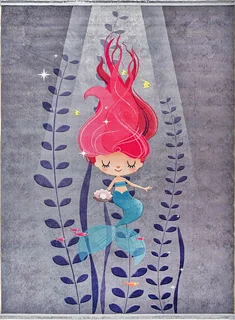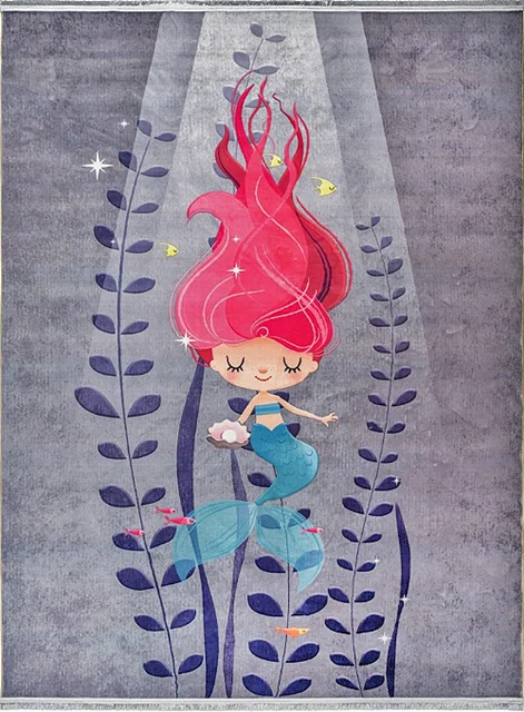 فرش محتشم اتاق کودک طرح پری دریایی کد 2599007090 زمینه تمام رنگ (غیربرجسته)