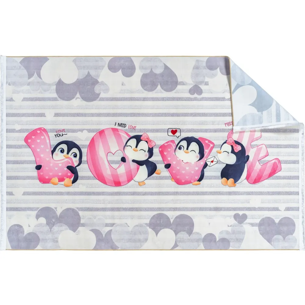 فرش محتشم اتاق کودک طرح پنگوئن های عاشق کد 25km0140 طوسی (غیربرجسته)