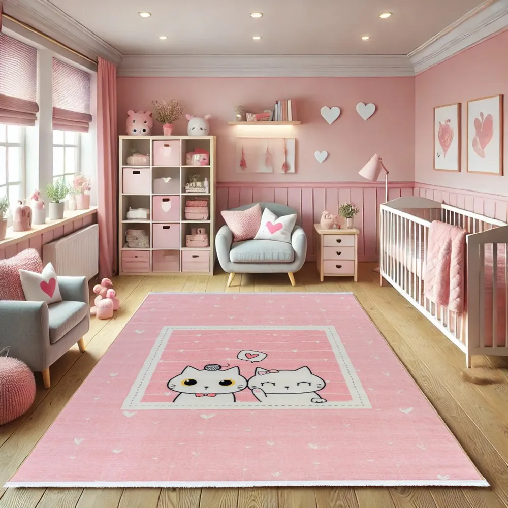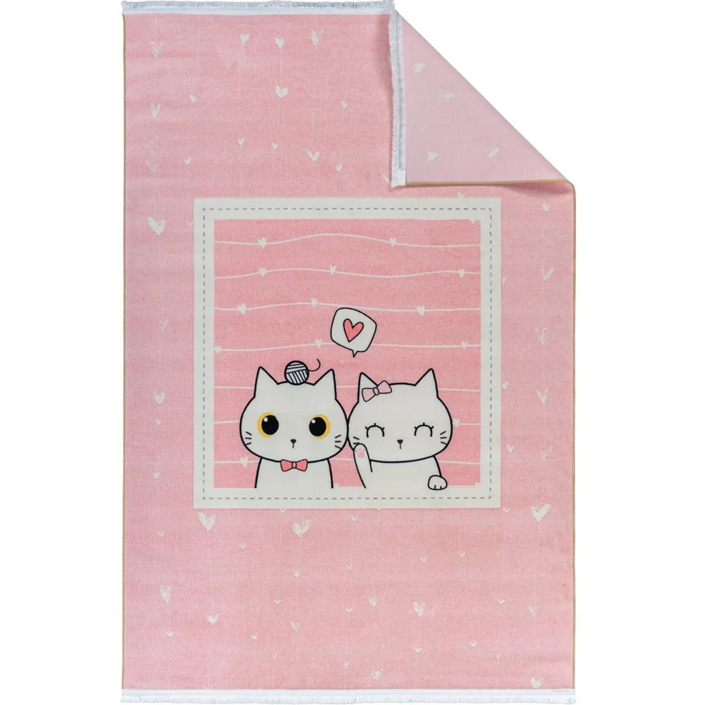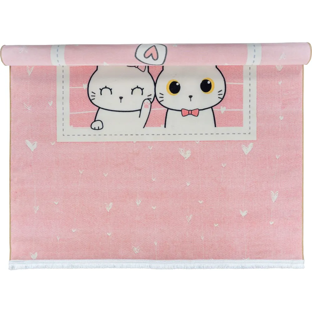 فرش محتشم اتاق کودک طرح پیشی ها کد 25KD0030 زمینه صورتی (غیربرجسته)