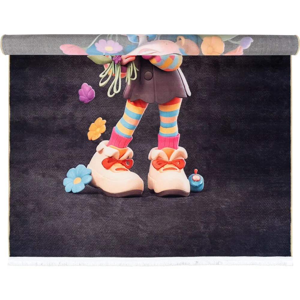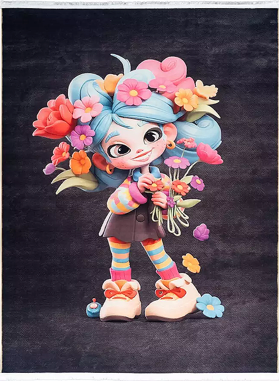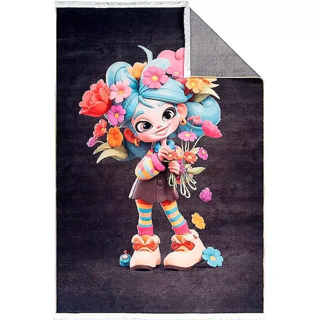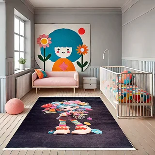 فرش محتشم اتاق کودک طرح گلی جان کد 25KD0000 زمینه سیاه (غیربرجسته)