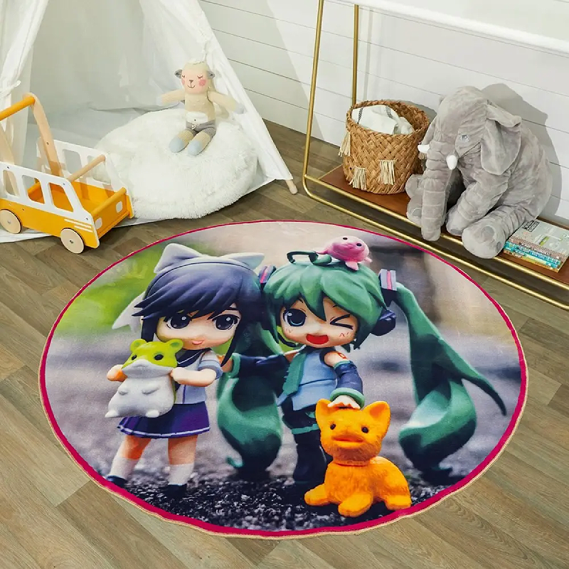 فرش محتشم اتاق کودک گرد 700 شانه طرح دختران وروجک کد 100261 زمینه تمام رنگ (غیربرجسته)