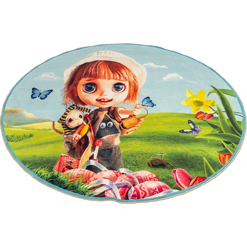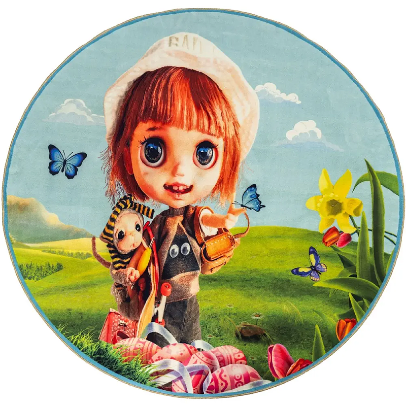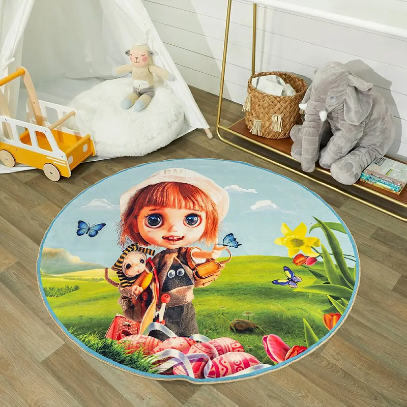 فرش محتشم اتاق کودک گرد 700 شانه طرح کتی کد 100260 زمینه تمام رنگ (غیربرجسته)