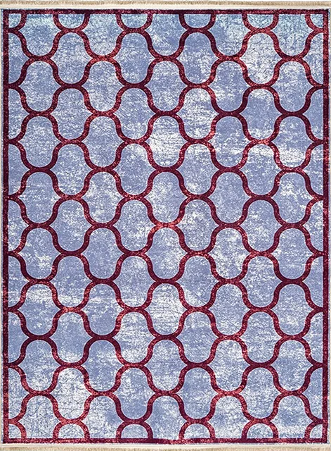 فرش محتشم مدرن کد 100473 زمینه زرشکی (غیربرجسته)
