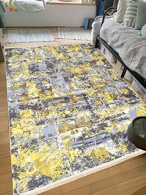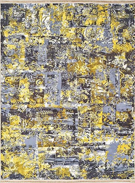 فرش محتشم مدرن کد 100478 زمینه زرد (غیربرجسته)