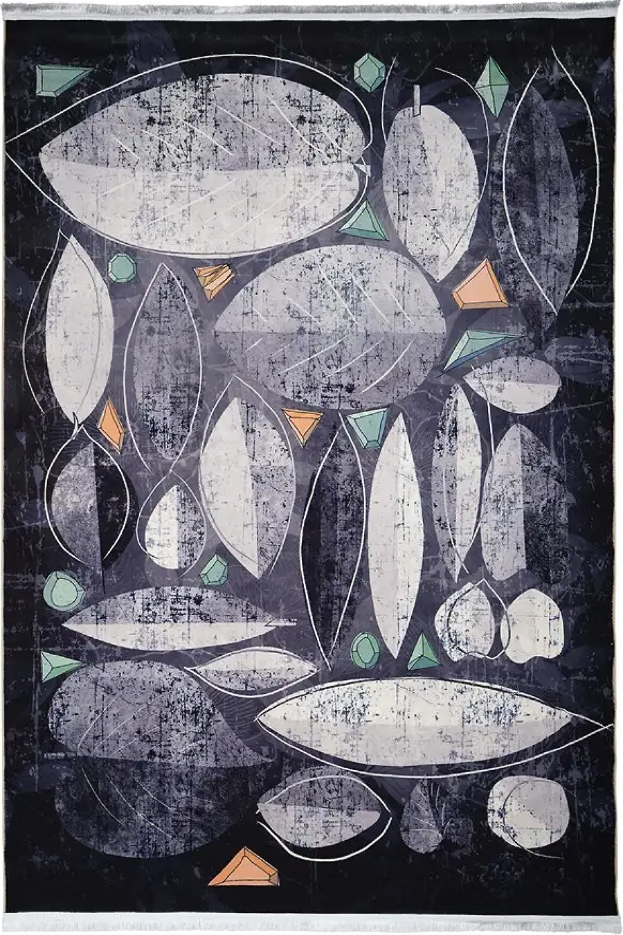 فرش محتشم مدرن کد 101485 زمینه خاکستری (غیربرجسته)