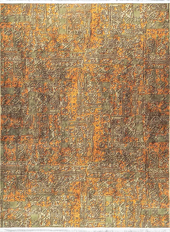 فرش محتشم مدرن کد 25AA0010 زمینه زیتونی (غیربرجسته)
