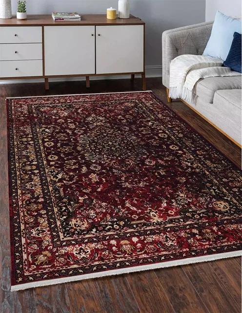 فرش محتشم کهنه نما 1000 شانه کد 100647 زمینه زرشکی (غیربرجسته)