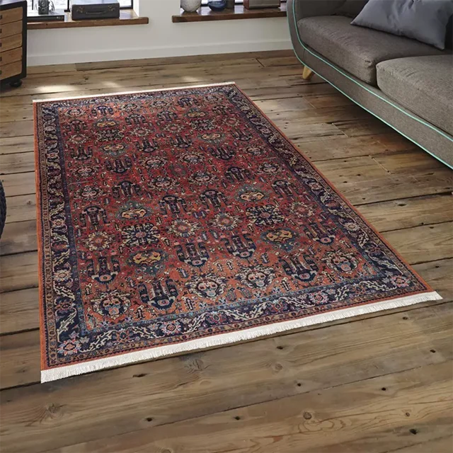 فرش محتشم کهنه نما 1000 شانه کد 200536 زمینه لاکی (غیربرجسته)
