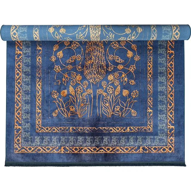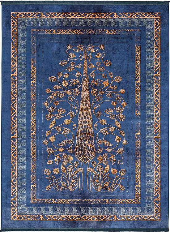 فرش محتشم کهنه نما 1000 شانه کد 900455 زمینه سورمه ای (غیربرجسته)