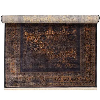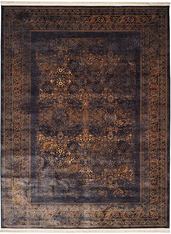 فرش محتشم کهنه نما 1000 شانه کد 900456 زمینه مشکی (غیربرجسته)