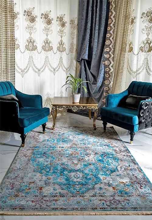 فرش محتشم کهنه نما 1000 شانه کد 100627 زمینه آبی (غیربرجسته)